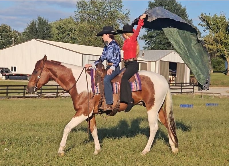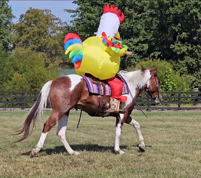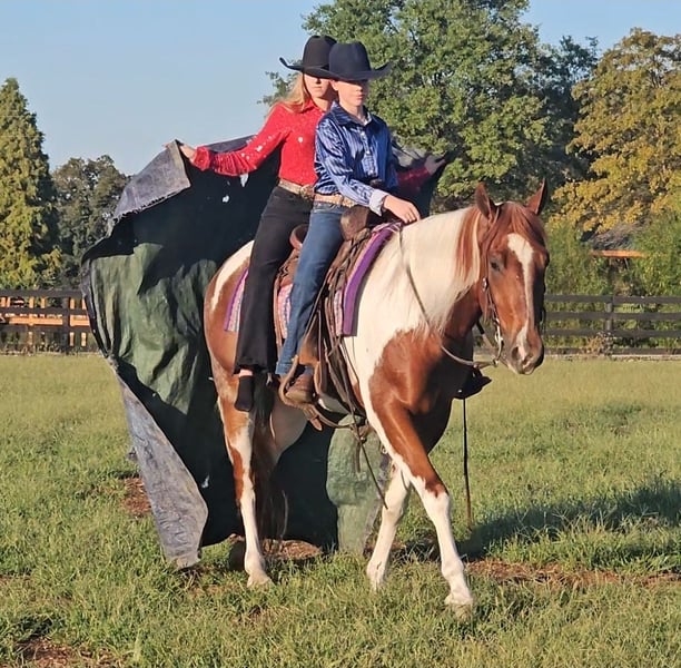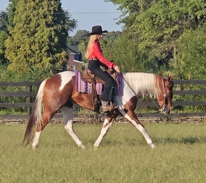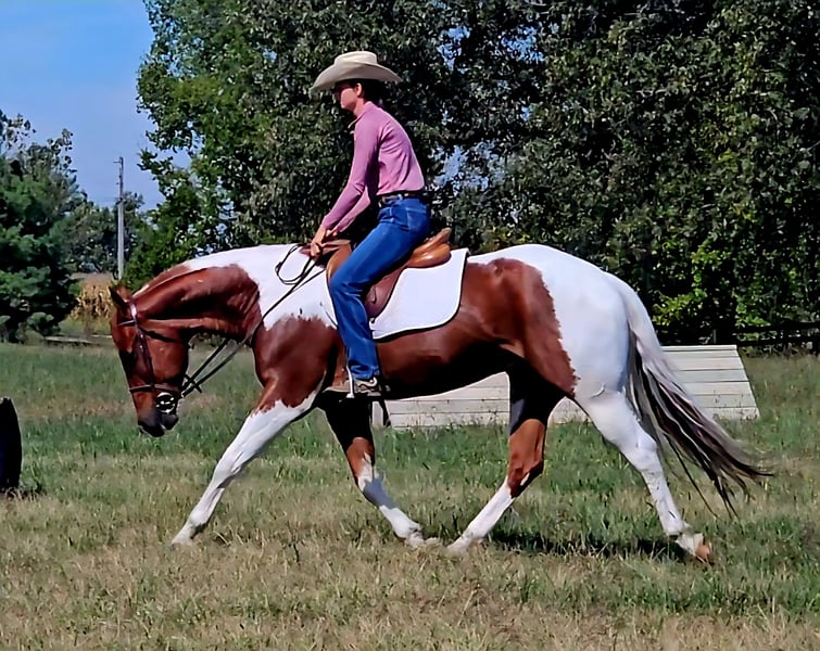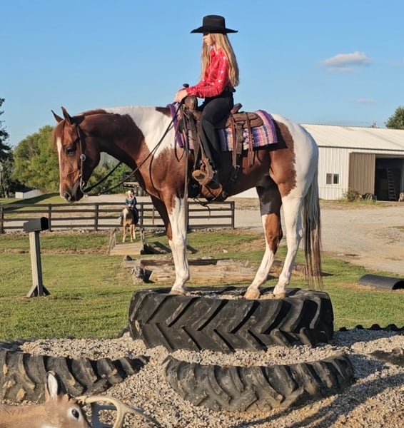 ♦️ 𝐭𝐡𝐞 𝐀𝐌𝐄𝐑𝐈𝐂𝐀𝐍 𝓕𝓪𝓵𝓵 𝓒𝓵𝓪𝓼𝓼𝓲𝓬 ♦️ Happening now thru MONDAY | OCTOBER 20th - Available EXCLUSIVELY on HorseBid's website! For more details and to register visit: www.Horsebid.com CONSIGNOR CONTACT: Pleasant Valley Equine 812-483-3948 LOCATION: Robards, KY BREED: PAINT Papers REGISTERED: Yes REGISTERED NAME: I RIGGED THE WORDS COLOR: Tobiano HEIGHT: 15.2 AGE: 4 GENDER: Gelding Check out this big, beautiful, broke gelding we call Spud! Spud aka “I RIGGED THE WORDS” is a flashy sorrel tobiano gelding standing at 15.2H weighing 1100lb. Spud is ready to go in any direction you want! Whether you’re looking for a lifelong trail mount, a promising show prospect, or a fun relaxing ride at home, Spud is up for the task! This guy is full of personality and is as easy going as they come! We’ve rode spud through traffic, by a moving train, shot off guns, and so much more. Seriously, nothing bothers this guy! Check out spuds video to really see what all he can do! Talk about a flashy gelding- this guy turns heads everywhere he goes! Not only does he look good sitting out in the field but he’s a pretty mover too! Spud has a correct foundation under his belt. He’ll walk, trot, and canter inside or outside the arena, gives to the bit laterally and vertically, stops, backs, and is simple to ride! He has also been started on show maneuvers and over fences. Spud is extremely versatile and could excel in many different disciplines such as hunter jumper, English eq, fox hunting, mounted shooting, ranch riding, horsemanship, etc. The sky’s the limit with this guy! Spud is very easy going and will ride off the same after having time off. He’s the first one to meet you at the gate and does well living inside or outside. He stands well to be bathed, saddled, shod, clipped, etc with no issues! Spud has no vices and requires no maintenance. He is UTD on vaccines, dental, coggins, worming, and shoes. If you have any questions or want to meet Spud please call or text Sydney Krietemeyer at 8124833948!