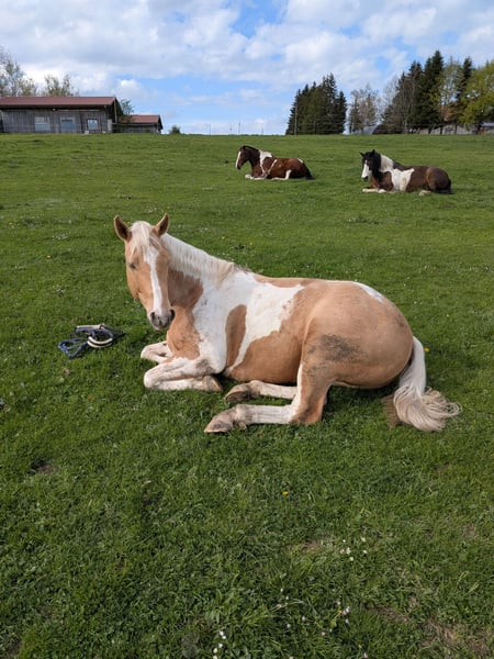 *Paint Horse Gelding for Leisure Riding* Born: February 20, 2020 Height: 15.6 hh Color: Palomino Tobiano Sire: Magic on Ice Dam: Holly didit Cuba has been ridden for approximately two years, with occasional breaks in between. He has been consistently exercised for nearly a year, mainly in the terrain, and now also rides alone. However, he does not particularly enjoy riding in the arena, at least not in a dressage context. Therefore, he is best suited for passionate trail riders. He is familiar with lunging, double-lunging, ground driving, pole work, groundwork, and more. He is very calm and rather laid-back in nature—definitely a horse without a lot of go. Still, he is sensitive, very strong-willed, and values fair treatment, so more experienced or routinized horsepeople may find it easier to handle him in certain situations. That said, responsible beginners can also enjoy working with him and will grow together with him thanks to his generally calm demeanor. In his youth, he suffered a hind limb injury at the stifle, which has fully healed and does not impair him, although it is visible. Therefore, he is not suitable for sport. Additionally, he cannot be transported without a reliable second horse. For the sale, transportation should preferably be arranged via truck or similar. All arrangements are possible in consultation. He can be ridden and, due to his young age, will not be sold as a companion horse only. A paddock or stable with plenty of turnout during the day would be ideal. He is familiar with both keeping systems. Price: €5,500 negotiable. Price is open to discussion. Location: 87634