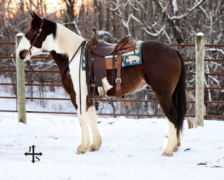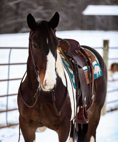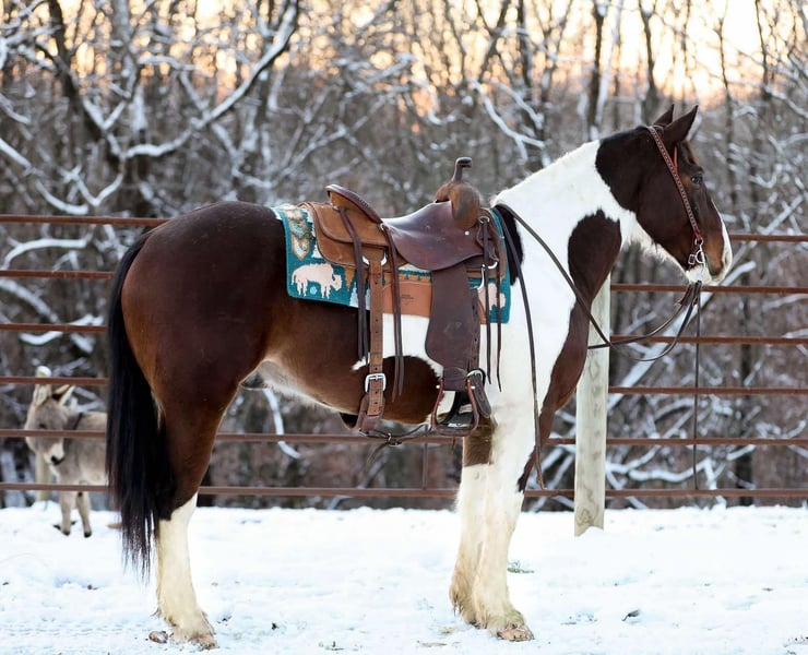 ONLINE AUCTION Place your bids at www.PlatinumEquineAuction.com Starting Bid $3500 Auction ends January 26th, 2025 Need a new saddle? Check out White Rock Saddles on our website or Facebook! Blaze is a good looking, fancy broke, 5 year old, bay tobiano, super stout built, draftcross gelding that aims to please. This is one that is a barn favorite to anyone who comes by whether it’s taking him for a swim or just feeding him treats in the pasture Blaze is sure to win you over. He stands right at 15.2hh and is spotted as good as yu can paint one! Blaze has been used for just about everything you could imagine doing on horseback. We have caught cattle, drug calves, snubbed colts, given roping lessons, done the obstacles and so much more. He is the definition of an all around gelding with a heart of gold. Blaze has been ridden hundreds of miles on a feeder calf operation and has been trail ridden in multiple states. He stands to be saddled, mounted and bathed. He’s one of the farriers favorite horses to shoe and will be one of your favorites to ride. He rides calm, quiet and safe with an attitude that’s always looking to please. He is located in Santa Fe, TN. Anyone is welcome to come see him in person or we can facetime call and see him in live-time. For more info contact J & S Equine JT 931-698-7159. ONLINE AUCTION Place your bids at www.PlatinumEquineAuction.com Starting Bid $3500 Auction ends January 26th, 2025 Need a new saddle? Check out White Rock Saddles on our website or Facebook!