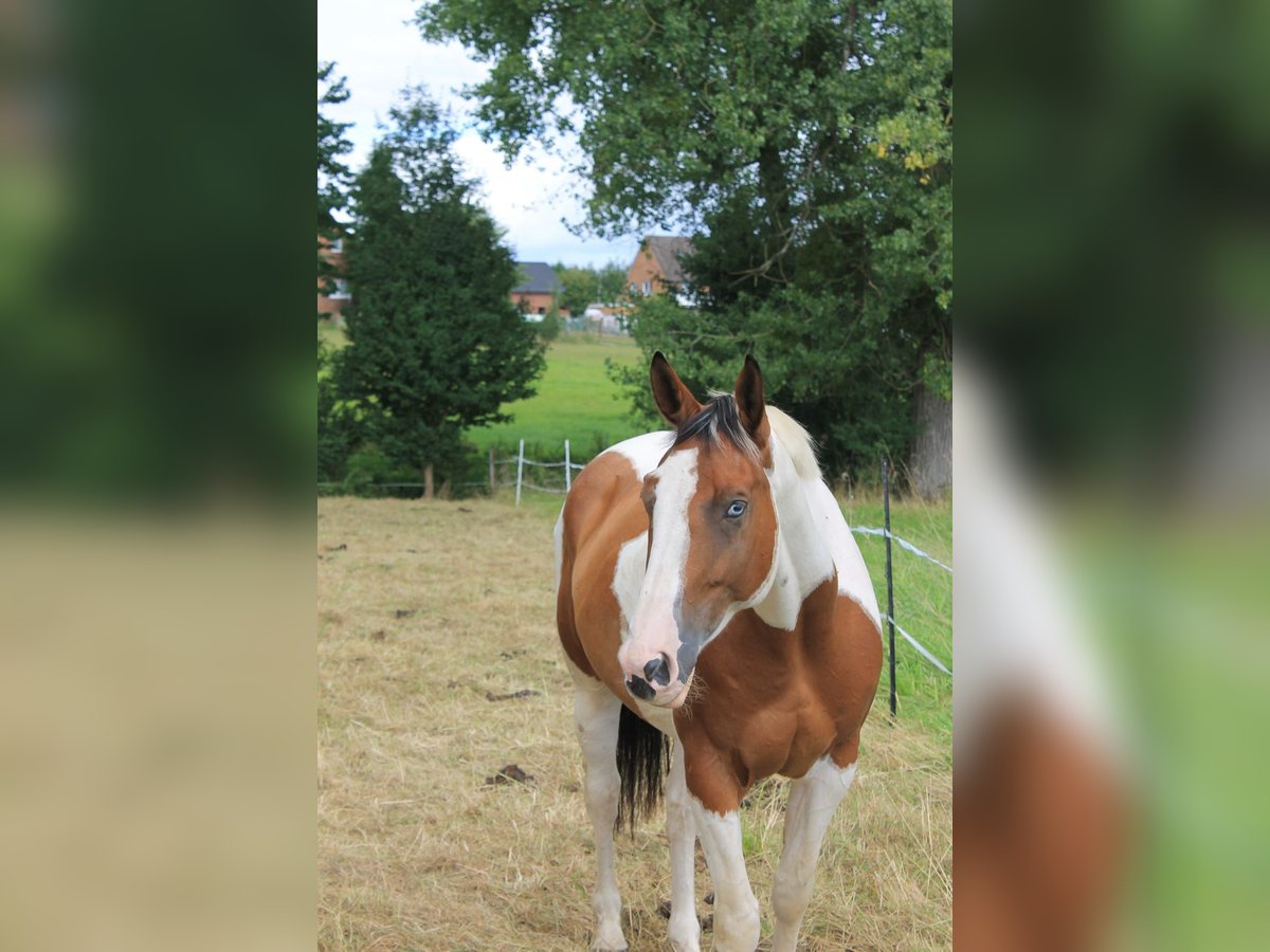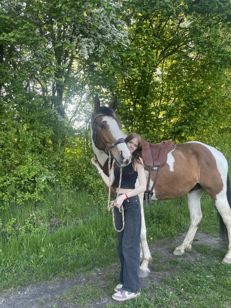 Biete Paint Horse Mix Wallach geb Juni 2020 zum Verkauf an. Er ist um die 1,65 m groß Er wird mit Zubehör verkauft. Er ist kein reines Anfänger Pferd da er bis jetzt nur angeritten ist und das auch nur Gebisslos. Er geht auch ins Gelände allein oder in einer Gruppe wurde allerdings länger nicht gearbeitet. Er hat keine Angst vor Hunden ,Trecker, Kinder oder sonstigen. Er geht auf den Hänger braucht aber viel Überzeugung. Er hat durch einen Unfall im offenstall einen Schönheitsfehler an der Nase , aber es beeinträchtigt ihn nicht! Am besten für ihn ist auch eine Wallach Herde , da es für ihn deutlich angenehmer ist. Mylo hat eine Diagnose , die ihm soweit aber nicht einschränkt darf ganz normal bewegt werden und ist Symptome frei, bitte erwartet nicht, dass ihr bei dem günstigen Preis ein kerngesundes Pferd bekommt. Dazu aber privat mehr. Wer interessiert ist und mir schreibt bekommt weitere Informationen über ihn. Mir ist wichtig das er ein schönes Zuhause findet! Bitte auch keine Händler , schulbetriebe oder sonstiges in der Art! Ich möchte für ihn ein festes Zuhause :) Wenn es auch passt , kann er auch schon direkt mit ausziehen.