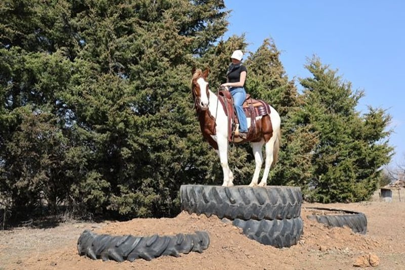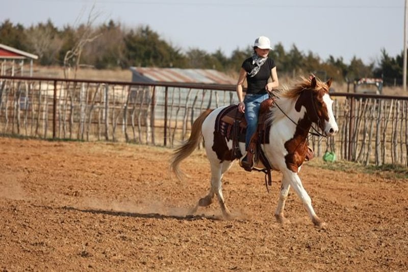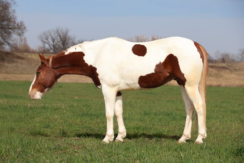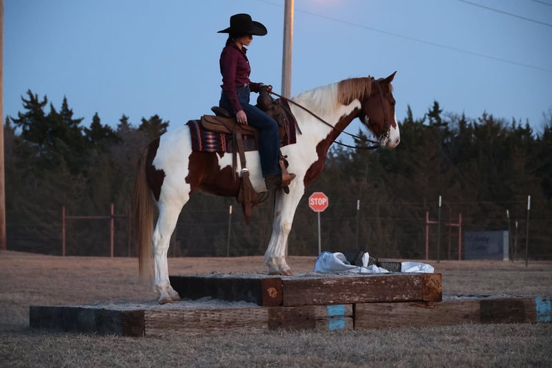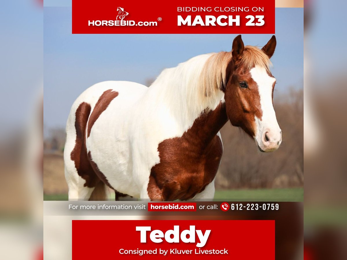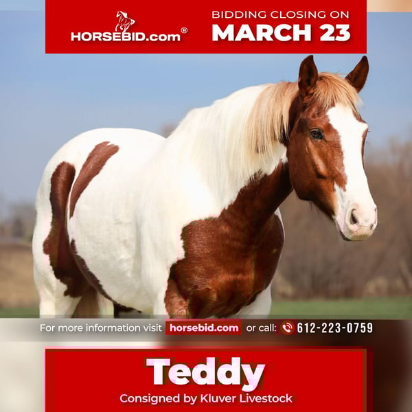 ⚜️𝓽𝓱𝓮 𝐆𝐎𝐋𝐃 𝓢𝓮𝓵𝓮𝓬𝓽⚜️ Happening now thru MONDAY | MARCH 23rd - Available EXCLUSIVELY on HorseBid's website! For more details and to register visit: www.Horsebid.com CONSIGNOR CONTACT: Kluver Livestock 612-223-0759 LOCATION: Ripley, OK BREED: Paint REGISTERED: No COLOR: Paint HEIGHT: 15.2 AGE: 7 GENDER: Gelding Teddy is a 7yr old grade paint gelding standing at 15.1 hands tall with looks to make everyone’s heads turn. He isn’t just flashy but he’s built right. He’s got phenomenal confirmation with a big hip, thick neck, and solid clean legs! He’s got more white than anything else, he really is a good looking horse! He’s the kind that you can leave tied up to your trailer all day and your only worry is if no one’s going to steal him from ya! He’s not just looks he’s got a great ride too! He’ll handle it all! This gelding is broke the way one should be, soft in the face, moves off your legs, and rides through anything with a willing attitude. He’s smooth, responsive, and easy to get along with whether you ride him every day or pull him out after time off. He’s very soft to ride where less is more and he’ll handle any job any day with ease. He can and has handled a long day in the feed lot, and wheat fields with ease. He’s also a finished calf, breakaway, and heel horse. He’s seen plenty of jackpots and rodeos and loves them. You can take him in the rodeo pen then use all the next day to tag your calves. He is as athletic as they come and handles it all without the bat of an eye. Not only is teddy a athlete he is a great joy riding horse for riding the trails, going through water, trail competitions, to parades teddy doesn’t bat an eye teddy will be the same horse every day of the year, dependable, with no buck spook and no funny business whatsoever!!