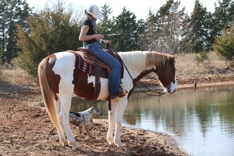 ⚜️La Selección de Oro⚜️ Ocurre ahora hasta el LUNES | 23 DE MARZO - ¡Disponible EXCLUSIVAMENTE en la página web de HorseBid! Para más detalles y registrarse, visita: www.Horsebid.com CONTACTO DEL VENDEDOR: Kluver Livestock 612-223-0759 UBICACIÓN: Ripley, Oklahoma RAZA: Pintura REGISTRADO: No COLOR: Pintura ALTURA: 15.2 hh EDAD: 7 años SEXO: Gelding (potro castrado) Teddy es un potro de 7 años de raza mixta Pintura, con una altura de 15.1 hh, que llama la atención por donde pase. No solo es llamativo, sino que está bien formado. Tiene una conformación fenomenal, con una grupa grande, un cuello grueso y patas limpias y sólidas. Tiene más blanco que cualquier otra cosa, ¡realmente es un caballo muy bonito! Es del tipo que puedes dejar atado a tu remolque todo el día y la única preocupación será si alguien va a robarlo. Pero no solo tiene buena apariencia, ¡también tiene un excelente carácter para montar! ¡Es capaz de afrontar cualquier tarea! Este potro está entrenado de la manera correcta: suave en la cara, responde a tus piernas y pasa por cualquier cosa con una actitud dispuesta. Es suave, sensible y fácil de montar, ya sea que lo montes a diario o después de un descanso. Es muy dócil, con una sensibilidad que demuestra que menos es más, y puede realizar cualquier trabajo con facilidad. Ha soportado días largos en el corral de engorde y en campos de trigo sin problema. Además, es un caballo terminado para caballos de rodeo, breakaway y heel. Ha participado en numerosos jackpots y rodeos, y le encanta. Puedes llevarlo al ruedo y al día siguiente usarlo para marcar becerros. Es tan atlético como cualquiera y lo afronta todo sin pestañear. Teddy no solo es un atleta, sino que también es un gran caballo para pasear por senderos, atravesar agua, competiciones de trail y desfiles. No le molesta nada y será el mismo caballo confiable todos los días del año, sin cabalgar de espaldas, sin espantar ni hacer cosas raras.