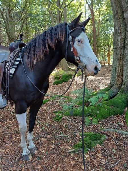 Beautiful, gentle Paint horse gelding for sale due to downsizing. King is a true all-rounder. I have personally done a lot of cattle work with him, but he also enjoys activities such as trail riding, pleasure, and horsemanship. He generally likes everything, but since my main interest lies in cattle work, he has been primarily trained for that purpose. He lives here in a mixed herd and is well cared for with regular deworming and vaccinations. He is also 5-panel negative. He is suitable for both beginner and experienced riders. Please note, he is deaf, which means he is not entirely traffic-safe. However, he is fine in the woods and on trails. Inspections allowed at the buyer's expense.