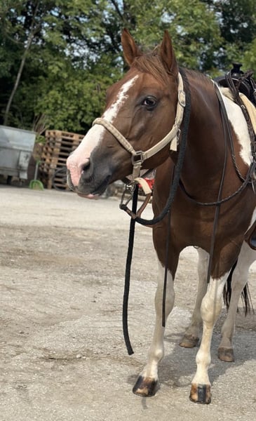 Little Foot Bonanza is a handsome gelding with nice, comfortable movements in all three basic gaits and a height of approximately 1.54 meters. He is farrier and loading-safe. Currently, he is barefoot, but he was recently shod in the front, which is why he is ridden in hoof boots in the terrain. I ride him Western. In disciplines such as Ranch Riding, Ranch Rail, and Showmanship, he has already proven himself at a competition, where he was very well-behaved and relaxed — and even managed to earn a ribbon. I also took him twice to the Equitana horse fair, where I presented him on a double longe line and worked him from the ground according to Pat Parelli. He was again very well-behaved and always behaved excellently. Bonanza has also been with me on holiday, where he behaved impeccably, both in a group and alone, in all three gaits in the terrain. All in all, a wonderful pony that is ready for any fun and has a lot of mischief in mind — BUT; the reason I am selling him is that we are unfortunately not a perfect match. Bonanza needs a very confident rider in daily training who is not afraid if the horse suddenly twitches. He senses any insecurity from the rider and becomes unsure himself. This can sometimes lead to him running off or bucking in the arena or riding hall! He has never bucked when mounting. Basically, he is a small, insecure soul that needs a lot of security and finds it hard to trust. Bonanza is stabled with daily turnout on paddock and pasture. A well-functioning herd would be ideal for companionship. He is used to being with geldings and mares. He passed a comprehensive AKU with all X-rays without any findings in May 2021. He has been regularly vaccinated, dewormed, and seen by the dentist. He has two fully healed tendon injuries (front left, August 2023) and is fully fit for work, with pictures available. He has MIM p3/n, so he is fed sugar- and grain-free, is slightly padded, and gets regular exercise, showing no symptoms (he had no flare-up with me). I am only offering him to the best hands and explicitly sell him as NOT suitable for beginners, NOT a child's horse, and NOT an absolute beginner’s trust horse! It must be a good match, as this little guy is truly not easy. Please only serious inquiries! Additional pictures and videos can be sent upon request. Priority goes to the right home over price.