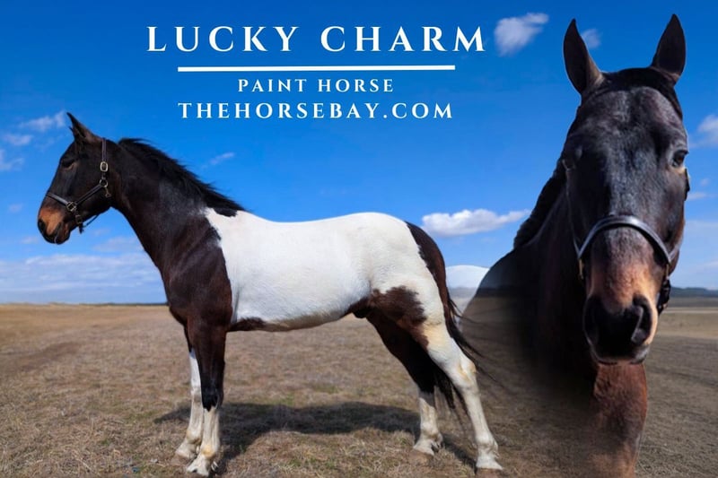 OPEN BIDDING ON THEHORSEBAY,COM. SALE ENDS ON 03/19. More information is available on the website, including an UTD vet inspection, Coggins, video, images, and the owner's contact information to ask questions, request information, or make arrangements to come to visit. Charm is a gentle 8-year-old paint horse standing at 15.1 hands. With his calm demeanor and love for attention, he’s a favorite among all who meet him. Charm gets along wonderfully with other horses, making him an ideal family companion. True to his name, he has an excellent attitude and thrives on trail rides through creeks and across the countryside. He’s easy to trailer, tie, clip, and bathe, making him a joy to handle.