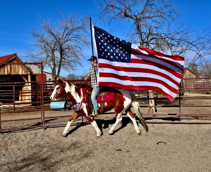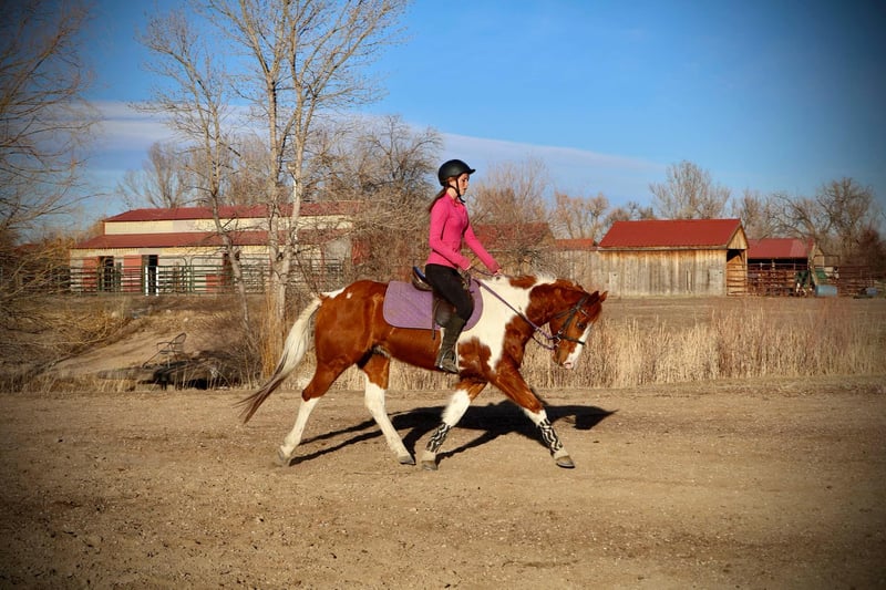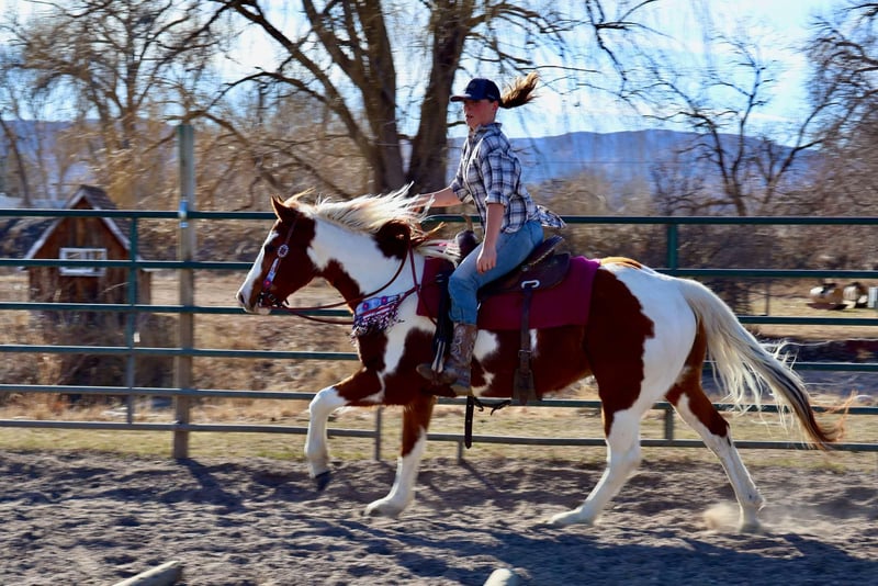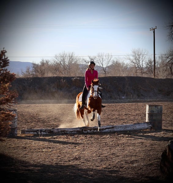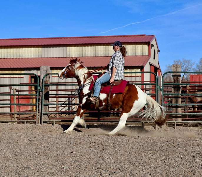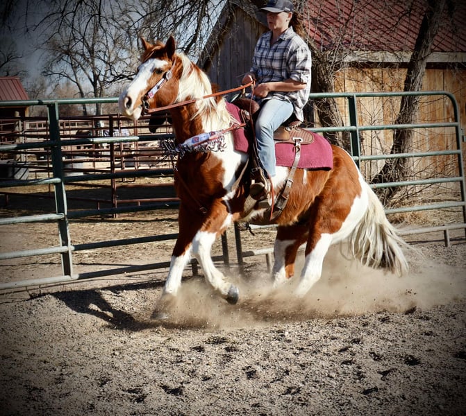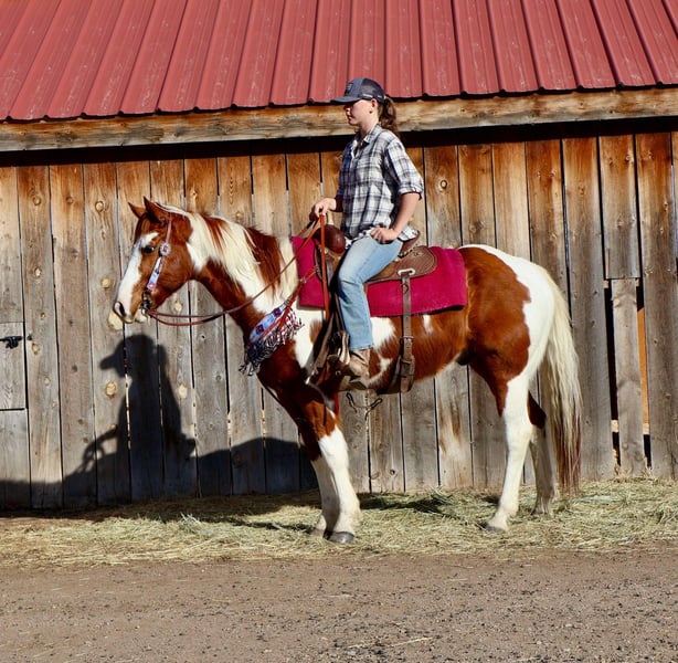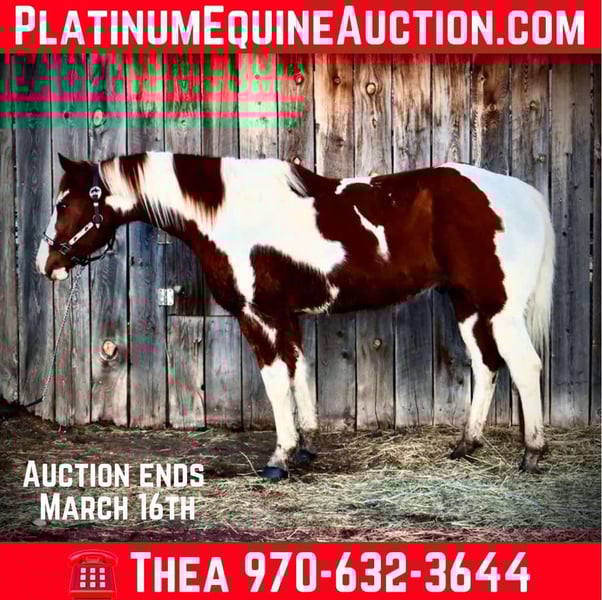 ONLINE AUCTION Place your bids at www.PlatinumEquineAuction.com Starting Bid $3500 Auction ends March 16th, 2025 Need a new saddle? Check out White Rock Saddles on our website or Facebook! Ringo is an 8 year old 15.1 hand absolutely stunning paint gelding with a heart as big as his coloring!! Ringo is easy to handle in all aspects, very respectful on the ground and in saddle, gets along with other horses and is first to meet you at the gate! Ringo stands for the vet and farrier, self loads and backs out, stands tied and is all around an easy going guy. Ringo has had a rope thrown off of him, been trail ridden extensively in town and around lots of commotion as well as up in the mountains with steep and rugged terrain, he’s been started in the western pleasure world and has an extremely lofty trot and lope and is an absolutely stunning mover with a sliding stop and gorgeous transitions! Ringo is also started English and over fences and he has a ton of scope and athleticism, Ringo does not miss a beat. Ringo would excel in the cross country or hunter jumper world! He can be as quick and as athletic as asked for but will also drop his head and be as slow as you want as soon as needed as well. This guy is young, athletic, smart and has dabbled in just about anything you could think of! Check out his video and come meet this sweet (and stunning) boy. Located in Fort Collins, CO. Contact Dynamite Horses Thea 970-632-3644 with any questions. ONLINE AUCTION Place your bids at www.PlatinumEquineAuction.com Starting Bid $3500 Auction ends March 16th, 2025 Need a new saddle? Check out White Rock Saddles on our website or Facebook!