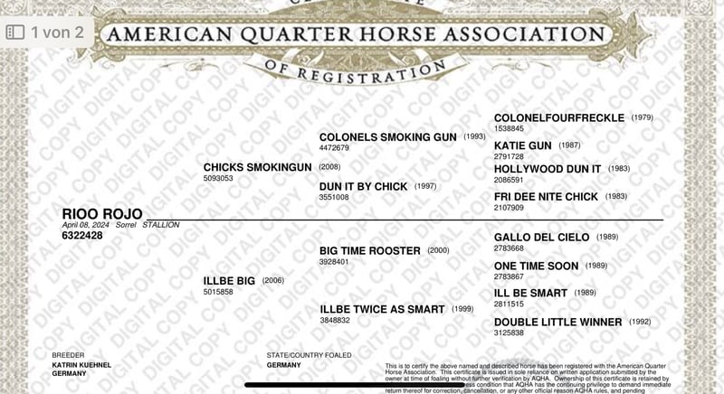 Jährling von top Hengst Chicks Smoking Gun