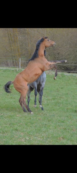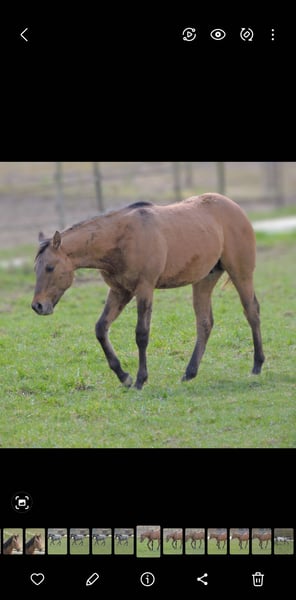 QH Fohlen geboren am 6.3.2025 ! Zur Zeit ist er 146cm groß und das Endmaß liegt ca bei 156-158 cm ! Regelmäßige Wurmkuren , Impfungen und Hufschmied sind selbstverständlich ! AQHA Papiere liegen vor ! Die Fotos sind aktuell , aber er hat noch nicht das eigentliche Sommerfell ! Er wächst im Herdenverband auf und steht in großen Laufboxen wo er immer Zugang zu Heu hat ! AQHA Papiere liegen vor . Er sind 6 Penel getestet mit N/N