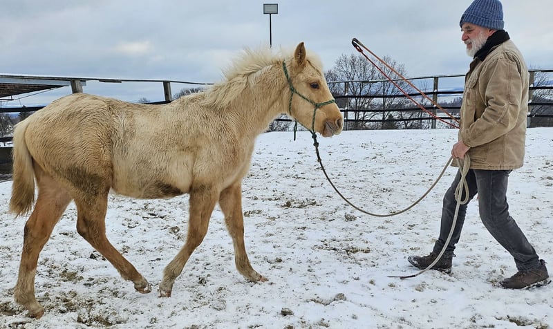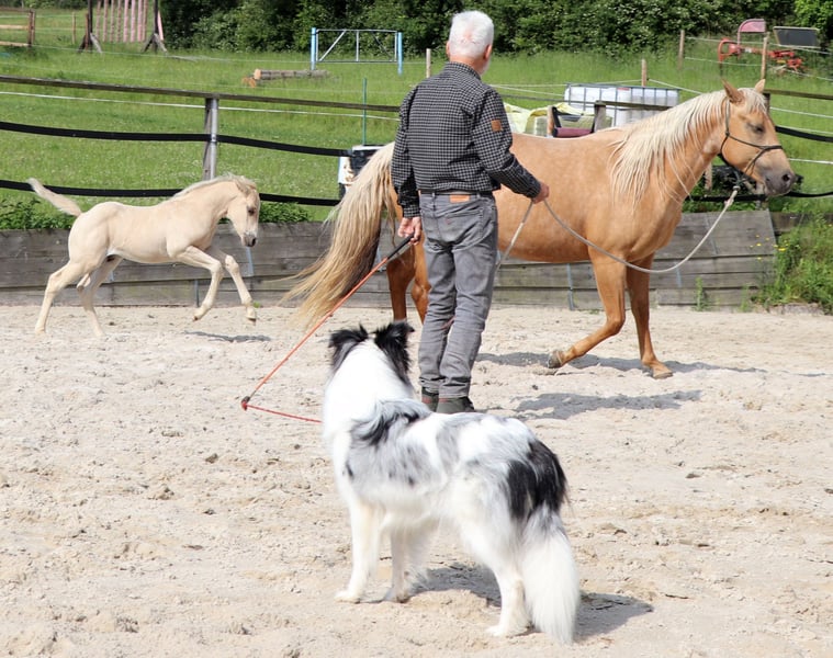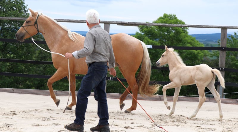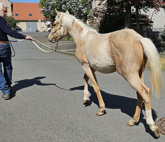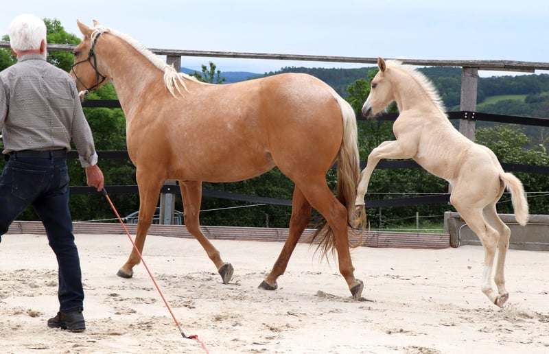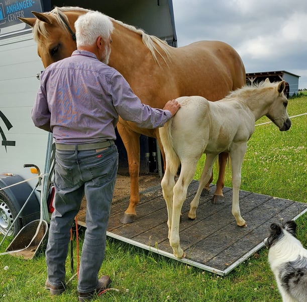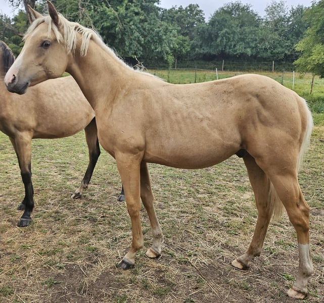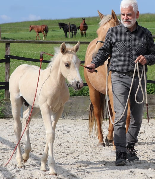 Kräftig gebauter Jährling - PEPPY ist korrekt gebaut und sehr menschenbezogen. Seine väterliche Cuttingabstammung wird kombiniert mit super Reiteigenschaften mütterlicher Seits. Er ist ein Enkel des $ 25 Million Dollar Sires Peptoboonsmal. Seine Halbgeschwister laufen erfolgreich in Reining, Cutting, Ranch Riding und Cowhorse. Peppy hat 22% Peppy San Badger im Pedigree. Derzeit genießt er das Leben auf einer großen Weide. PEPPY ist DQHA & Regionen-Futurity startberechtigt. Er wird von uns behutsam mit den Methoden der Natural Horsemanship auf sein künftiges Leben vorbereitet. Er lässt sich in den Hänger schicken und beim Schmied steht er ruhig und gelassen. Aktuell läuft er als Handpferd mit ins Gelände.