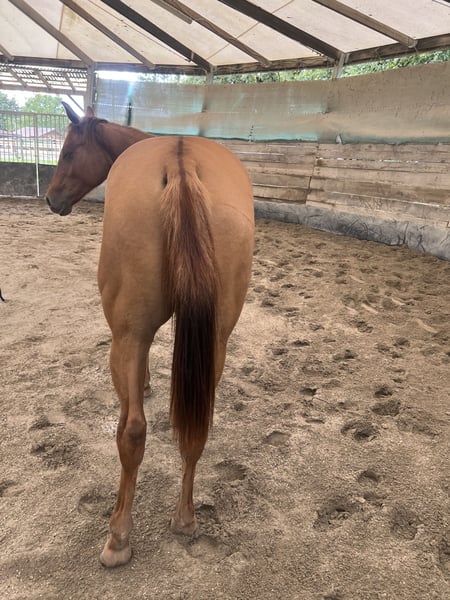 Quarter Horse Jährlingshengst Zu verkaufen steht Dun Chic N Cash, ein vielversprechender Jährlingshengst mit erstklassiger Abstammung: Little Joe Cash x Chick Please. Seine Papiere sprechen für sich – beste Reining- und Allround-Linien für Sport und Freizeit. Der junge Hengst ist im Herdenverband aufgewachsen, er kennt das Fohlen-ABC sowie erste Bodenarbeit. Dun Chicken Cash zeigt sich neugierig, freundlich und lernbereit – ein toller Partner für die Zukunft. Wir wünschen uns für ihn ein liebevolles Zuhause bei Menschen, die seine Qualitäten zu schätzen wissen und ihn weiter fördern möchten.