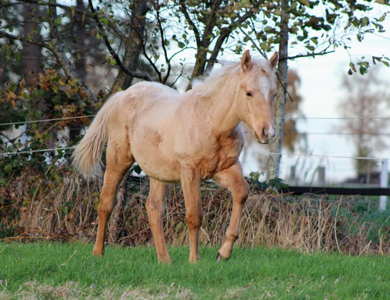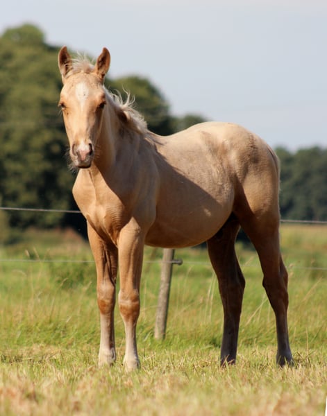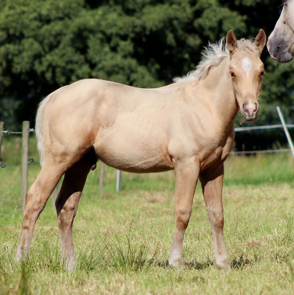 **Verkaufsanzeige: American Quarter Horse Hengst** Zum Verkauf steht ein vielversprechender American Quarter Horse Hengst, geboren im Jahr 2025. Dieser elegante Palomino zeichnet sich durch sein charmantes Wesen und seine hervorragenden Reining-Fähigkeiten aus. **Merkmale:** - **Rasse:** American Quarter Horse - **Geschlecht:** Hengst - **Geburtsjahr:** 2025 - **Farbe:** Palomino - **Ensstockmaß geschätzt :** 151 cm - **Disziplin:** Reining Er kann gerne zur weiteren Aufzucht bei uns bleiben (monatliche Kosten für Unterbringung und Futter 100€). Unser Hengst hat das Potenzial, sowohl im Sport als auch als Freizeitpartner zu begeistern. Er ist gut erzogen, umgänglich und zeigt bereits viel Talent. Bei Interesse oder weiteren Fragen stehe ich Ihnen gerne zur Verfügung. Lassen Sie sich diese Gelegenheit nicht entgehen, einen außergewöhnlichen Partner für sich zu gewinnen! Er besitzt einen Equidenpass der DQHA und COR der AQHA. Wurde regelmäßig entwurmt und dem Hufschmied vorgestellt. NRHA Germany SSP NRHA Belgium Sire & Dam nominiert (über Sire) EURO Futurity/Derby nominiert Bei Interesse freuen wir uns auf Ihre Kontaktaufnahme, um Ihnen weitere Informationen zu geben und einen Besichtigungstermin zu vereinbaren. www.white-diamond-horses.de
