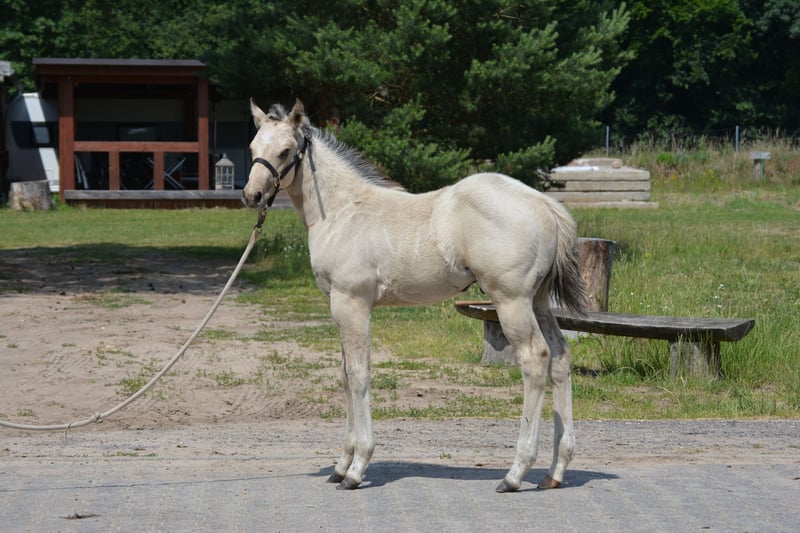 Apple Jack is a great stallion with a strong build and an excellent pedigree. A real eye-catcher! His full sister can be seen on site. He will have a lot of feathering and an extraordinary color! Whether for competitions or leisure – he will be an amazing companion in all situations! Directly from the breeder with AQHA papers and equine passport, of course regularly dewormed and halter-trained.