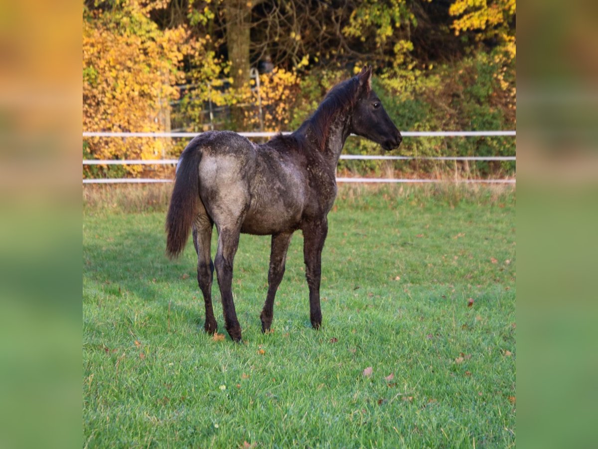 Just Be Blue Sky - dieser bildhübsche Quarter Horse Hengst, geboren am 9.4.2025, beeindruckt in der auffälligen Farbe Blue Roan und wird voraussichtlich ein Endmaß von 150 bis 154 cm bekommen. Homozygot für black und roan. Blue ist über seine Eltern 5-Panel n/n. Er wächst gesund und artgerecht im Herdenverband mit anderen Jungpferden auf. Bei Abgabe wird er entwurmt sein. Kennt dann den Tierarzt und den Hufschmied. Mit seinem lieben Charakter verzaubert er die Umwelt. Ist verschmust sowie cool und erkundigt gerne seine Umwelt. Blue wird täglich gehändelt und benimmt sich dabei brav und unkompliziert. Beim Toben zeigt er jetzt schon seine tollen Bewegungen. Dank seiner guten Allround Abstammung wird er sich voraussichtlich sehr gut für den Sport oder/und als treuen Freizeitbegleiter eignen. Wird mit vollen AQHA Papieren und Equiden Pass abgegeben.