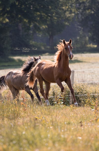 Calimero is an open-minded young stallion who is raised in a species-appropriate environment with a herd of stallions of the same age. He is regularly dewormed and has been introduced to the farrier. He comes from the best Reining/cowhorse lines. Further information available upon request.