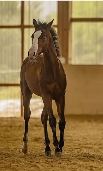 Super chices, sehr korrektes Hengstfohlen mit viel Ausstrahlung. Sein Vater, Redwhiteandblue Boon , war 3 und 4 jährig Cutting Futurity Champion in Italien und hat bereits sehr erfolgreiche Nachzucht produziert. Seine Mutter, eine Tochter von Cromed out Mercedes wurde erfolgreich in Reining geshowt. Und auch dieses Hengstfohlen zeigt schon jetzt sein enormes Potential ! DQHA Fohlenschau 1A Prämie