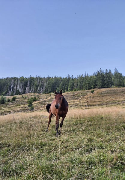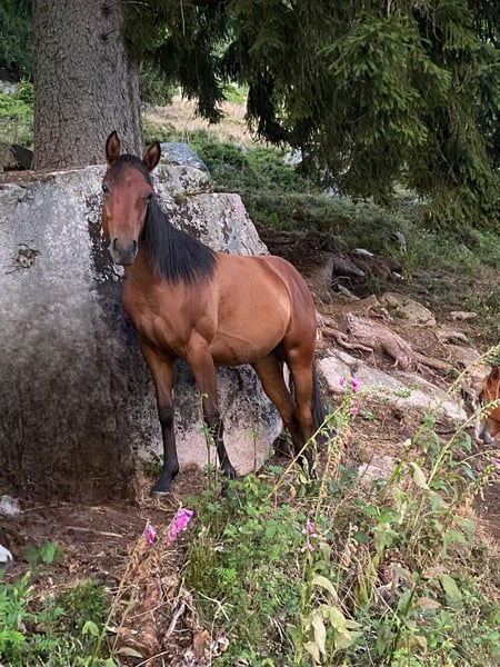 Stormy is a very friendly and trusting stallion. He has a large frame with solid, strong bones. Good pedigree – suitable for sport and also ideal for ambitious recreational riders. Clear-headed. He is growing up healthy on our extensive Black Forest pastures, within the herd. **Please note that entering the farm and pastures for viewing, as well as riding our sale horses, is always at your own risk! We exclude any liability! A test ride of our sale horses costs €50. This amount will be credited back if you purchase a horse.**