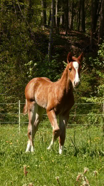 QH-Hengst geb. 13.04.24, 6 Panel N/N über die Eltern, sorrel, "Murphy" ist ein sehr neugieriger, menschenbezogener und unerschrockener junger Hengst, er wächst bei uns artgerecht mit anderen Junghengsten in der Herde auf großen Weideflächen auf. Natürlich mit AQHA Papier und Equidenpass, gerne kann er auch nach Absprache zur weiteren Aufzucht bei uns bleiben, NRHA Germany u. Euro einbezahlt. Aufgrund der Abstammung nicht nur für die Reining sondern auch für die Cowhorse sehr interessant. Weitere Infos gerne telefonisch