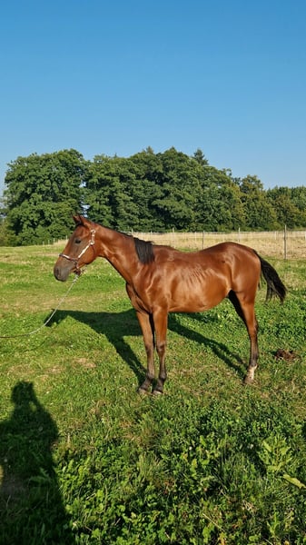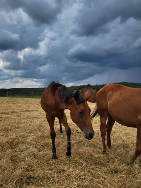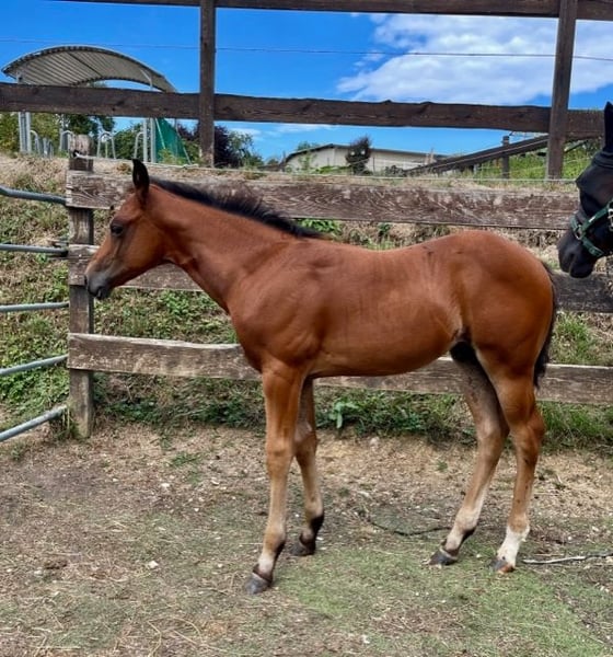 Pour notre "BEN" (ZIPPOS BENTLEY RIDE), nous recherchons une maison 5 étoiles. Ce joli étalon Quarter Horse (né en 2024) a vu le jour chez nous. Ses parents sont également sur notre ferme : Mère : ZIPPYS GLAMOURDONNA Père : Zippos King Bar BEN est notre petit paquet de muscles. Il se distingue par son apparence élégante et intemporelle. Il possède une conformation très correcte et est doté d'un mouvement exceptionnel. Il convient aussi bien pour les compétitions que pour les loisirs. Il est actuellement encore en élevage avec sa mère et a des poulains de son âge pour jouer. Il a découvert tout ce qu'il faut savoir à cet âge : Donner les sabots, être brossé, se doucher/laver, être mené en licol. Ben est régulièrement vermifugé, possède un passeport équin de la DQHA et les papiers américains (certificate of registration) de l'AQHA. Il peut soit rester ici pour un élevage supplémentaire, soit déménager dans sa nouvelle maison. Si vous souhaitez rencontrer Ben, n'hésitez pas à nous écrire.