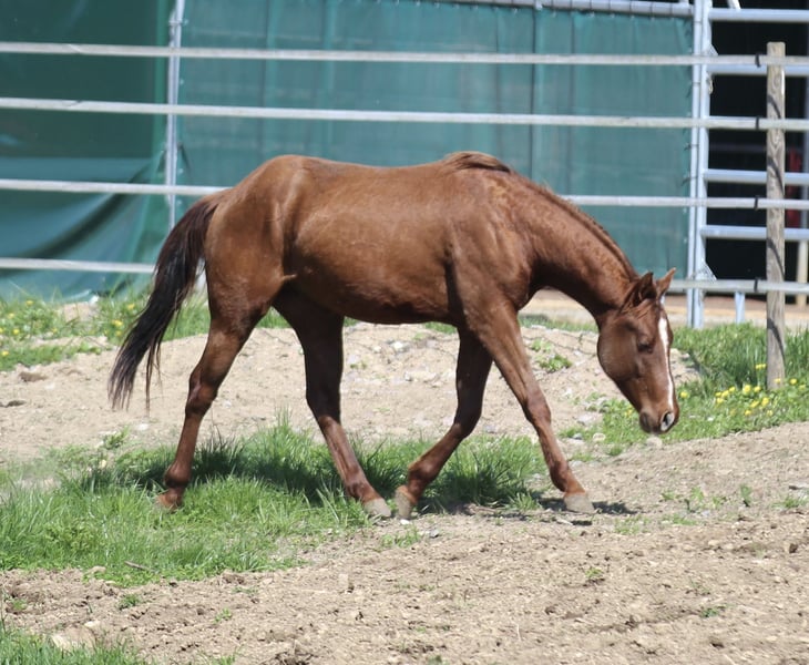 ‚Dual Cash SR‘ ist ein liebenswürdiger, super athletisch gebauter Junghengst, in wunderschönem chestnut! Seine Mutter ist eine direkte Dual Peppy Stute aus einer Smart Little Lena x Poco Bueno Mutter. Sein Vater ist Little Chex to Cash. Beide Elterntiere sind erfolgreich Reining geshowt. Verfügen über einen tollen Cowsense und generieren super rittige, sehr brave Nachzucht. „Haribo“ lebt in Offenstallhaltung mit anderen Junghengsten und Wallachen, kennt Hänger fahren, selbstverständlich das Jungpferde ABC, Bodenarbeit und ist anlongiert. 6 Panel N/N