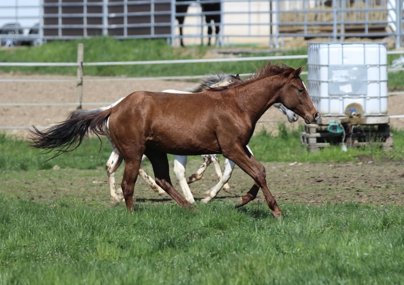 Ze względu na miejsce ze względu na zniszczoną stajnię po burzy super tani w sprzedaży. 'Dual Cash SR' to sympatyczny, super atletycznie zbudowany ogierek, w pięknym kasztanie! Jego matką jest klacz Dual Peppy od matki Smart Little Lena x Poco Bueno. Jego ojcem jest Little Chex to Cash. Obojgu rodzicom udało się wykazać reiningiem. Mają świetny zmysł krowy i generują super jeździeckie, bardzo dobrze wychowane potomstwo. Dual jest odsadzany od piersi i regularnie odrobaczany, a także prowadzony na kantarze i żyje w otwartych stajniach.