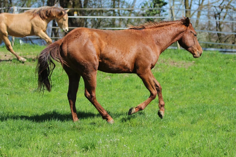 For reasons of space due to destroyed stable after storm super cheap to sell. 'Dual Cash SR' is an amiable, super athletically built colt, in beautiful chestnut! His dam is a direct Dual Peppy mare out of a Smart Little Lena x Poco Bueno dam. His father is Little Chex to Cash. Both parents have successfully shown reining. They have a great cowsense and generate super rideable, very well-behaved offspring. Dual is weaned and regularly dewormed, as well as halter-led and lives in open stables.