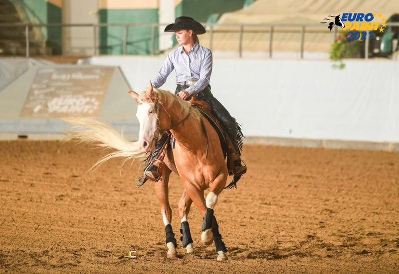 Giovane stallone molto tipografico con una base stabile e corretta, atletico e forte nei movimenti. Presenta andature piatte ed elastiche e colpisce per il suo carisma. Geni del colore: splash 1 ,splash 2 5 canali negativi: PSSM1 n/n, Herda n/n, HYPP n/n, MH n/n, GBED n/gbed, OLWS n/n Costo dell'allevamento: 550€ più spese di gestione È molto maneggevole e facile da addestrare, cosa che trasmette sempre alla sua prole. Inoltre, il suo solido pedigree da allevamento/ranch fa di lui e della sua progenie un ottimo partner per il tempo libero e un cavallo da esposizione da ranch. Successi: -Test di performance dello stallone PHCG -Campione Bavarese di Reining verde -Campione bavarese di equitazione da ranch -Campione Bavarese Ranch Rail Pleasure -Medaglia di bronzo Euro Paint Ranch Rail Pleasure -Top 10 Equitazione da Ranch Euro Paint Prole di successo: -2023 Campione Europeo Reserve 2Yr Old Geldings -2023 Campione di maturità PHCG Stallone/Gelding di 2 anni -2023 Campione PHCG Foal Show con premio 1A con 8,1 -2022 5° Stallone svezzatore PHCG Futurity - 2021 Puledro premio DQHA 1A con 81,78%. -2021 Puledro premio PHCG 1b con 7,6 -2021 Puledro premio DQHA 1b con il 77,84%. -2021 Puledro premio PHCG 1A con 8,1