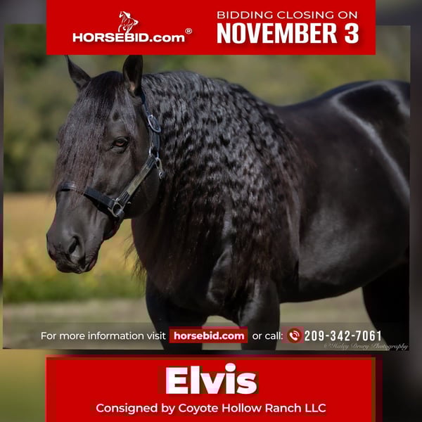 ⚜️𝐓𝐇𝐄 𝐅𝐀𝐋𝐋 𝐇𝐄𝐑𝐈𝐓𝐀𝐆𝐄 𝐂𝐋𝐀𝐒𝐒𝐈𝐂⚜️ Happening now thru MONDAY | NOVEMBER 3rd - Available EXCLUSIVELY on HorseBid's website! For more details and to register visit: www.Horsebid.com CONSIGNOR CONTACT: Jamie Thomason 270-772-1706 LOCATION: Auburn, KY BREED: AQHA REGISTERED: Yes REGISTERED NAME: IMA DRIFTWOOD 1602 COLOR: Smokey Black HEIGHT: 14.2 AGE: 9 GENDER: Stallion The perfect horse! Family friendly, safe for anyone, the kind everyone wishes they had in their barn. Elvis is as versatile as he is dependable. Whether you’re heading out for a relaxing trail ride, letting the kids climb on for an afternoon adventure, or backing into the box, he’s ready to go to work with a calm, steady attitude. He’s been used for lessons, carried non-horsey guests, tie-down roping, heading, heeling, breakaway, and ranch work, proving himself as a solid, trustworthy partner in and out of the arena. A true gentleman through and through, he handles every situation with patience and confidence. This horse isn’t just another mount — he’s the kind you can count on day after day, a loyal partner, and a true friend. Elvis is a 9 yr old, Smokey Black, AQHA Stallion, standing 14.2 hands. A deluxe trail mount, Elvis will go absolutely anywhere you point him. Zero spook & Confident, sure-footed, and steady, he’s been ridden on countless trails and overnight camping trips, always taking everything in stride. Whether you’re winding through wooded paths, crossing creeks, climbing hills, in town, through traffic or riding out across open country, he moves out willingly and safely for riders of any level. He’s the kind you can relax and enjoy the ride. In the arena, Elvis had been hauled to every setup. Indoor & outdoor, even to ranch rodeos. On the head side, been used for 12 point ropings and down. Good for the 8 point ropings on the heel side & ready to haul in the tie down & breakaway roping. Elvis has been used on a seed stock cattle operation his entire life. Accustomed to all aspects of ranch work. Tagging & doctoring calves, gathering strays, & working along stock dogs. Always honest & an asset to his partner. Everyone loves Elvis! He has been the spotlight of several senior photos sessions, this guy belongs on the movie screen! He’s gorgeous, “The King” of the barn. Visitors always stop by his stall to admire his beauty. We are often asked why Elvis was kept a stallion. You wouldn’t know he was a stallion. He is quiet, pastures, stalls, hauls, and stands tied along side mares. He passes the same calm, quiet, willing demeanor, as well as stunning looks on to his foals. He carries a dilute gene, was bred to a few select mares, and has sired palomino roans, bay roans, sorrels, and black foals. Each and every one have possessed the same great qualities that we admire in Elvis. If owning a stallion or breeding isn’t in your future plans, there are no contraindications in having Elvis gelded if you wish. If you would like to meet Elvis prior to adding him to your family, we’d be glad to have you. Arena, trails, & live cattle available. Elvis sells current on all cares, PPE’s welcome, & we can provide assistance in arranging transportation to anywhere!