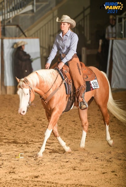Giovane stallone molto tipografico con una base stabile e corretta, atletico e forte nei movimenti. Presenta andature piatte ed elastiche e colpisce per il suo carisma. Geni del colore: splash 1 ,splash 2 5 canali negativi: PSSM1 n/n, Herda n/n, HYPP n/n, MH n/n, GBED n/gbed, OLWS n/n Costo dell'allevamento: 550€ più spese di gestione È molto maneggevole e facile da addestrare, cosa che trasmette sempre alla sua prole. Inoltre, il suo solido pedigree da allevamento/ranch fa di lui e della sua progenie un ottimo partner per il tempo libero e un cavallo da esposizione da ranch. Successi: -Test di performance dello stallone PHCG -Campione Bavarese di Reining verde -Campione bavarese di equitazione da ranch -Campione Bavarese Ranch Rail Pleasure -Medaglia di bronzo Euro Paint Ranch Rail Pleasure -Top 10 Equitazione da Ranch Euro Paint Prole di successo: -2023 Campione Europeo Reserve 2Yr Old Geldings -2023 Campione di maturità PHCG Stallone/Gelding di 2 anni -2023 Campione PHCG Foal Show con premio 1A con 8,1 -2022 5° Stallone svezzatore PHCG Futurity - 2021 Puledro premio DQHA 1A con 81,78%. -2021 Puledro premio PHCG 1b con 7,6 -2021 Puledro premio DQHA 1b con il 77,84%. -2021 Puledro premio PHCG 1A con 8,1