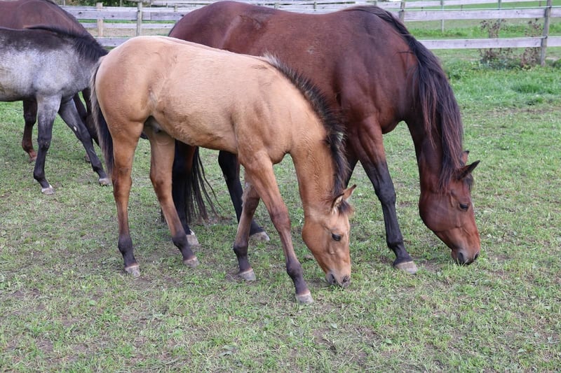 Dusty ist ein schönes Quarter Horse Hengstfohlen,geboren am 8.5.2025. Geschätzte Grösse von 150-153 cm,5 Panel und MYHM über die Eltern N/N. Er wird bis zum absetzen halfterführig sein und das Fohlen ABC kennen. Kennt Kinder,Hunde und Traktoren und wächst in einer Stutenherde mit anderen Fohlen auf. Dusty wird regelmässig entwurmt. COR von der AQHA ist vorhanden und der Equidenpass beantragt.