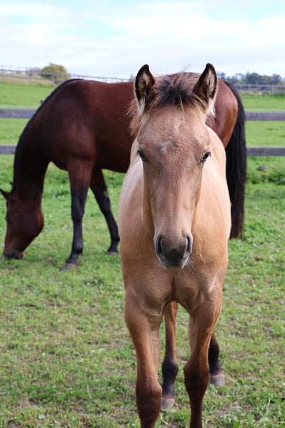 Dusty est un beau poulain étalon Quarter Horse, né le 8 mai 2025. Taille estimée de 150 à 153 cm, 5 Panel et MYHM par les parents N/N. Il sera manipulé avec un licol jusqu'au sevrage et connaîtra les bases du poulain. Il est habitué aux enfants, aux chiens et aux tracteurs et grandit dans un troupeau de juments avec d'autres poulains. Dusty sera régulièrement vermifugé. Le COR de l'AQHA est disponible et le passeport équin est en cours de demande.