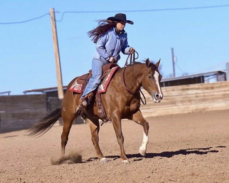 🎄 ŚWIĄTECZNA IMPREZA 🎄 Od teraz do PONIEDZIAŁKU | 15 GRUDNIA – dostępne WYŁĄCZNIE na stronie HorseBid! Więcej szczegółów i rejestracja na stronie: www.Horsebid.com Kontakt do sprzedającego: SKC Livestock, tel. 806-282-7093 Lokalizacja: Canyon, Teksas Rasa: Quarter Horse Rejestrowany: Tak Imię rejestrowe: Treasured Mercedes Kolor: Sorrel Wysokość: 15 hh Wiek: 9 lat Płeć: Klacz