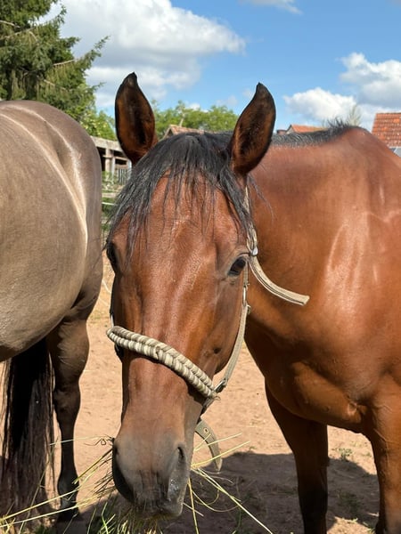 Ogłoszenie sprzedaży: Klacz American Quarter Horse Na sprzedaż piękna klacz American Quarter Horse, urodzona w 2015 roku. W paszporcie equiden znajduje się informacja o kolorze – kasztanowata (Bay). Jej przyjazny charakter i chęć nauki czynią ją idealną partnerką dla jeźdźców rekreacyjnych. Klacz jest dobrze ułożona, ma doskonały stan zdrowia, jest regularnie szczepiona i odrobaczana. Doskonale nadaje się do westernowego wszechstronnego jeździectwa. Idealnie byłoby sprzedać ją razem z: https://www.ehorses.de/american-quarter-horse-stute-7jahre-grullo-western-allround-deckhengst-heilsbronn/4522079.html Jeśli jesteś zainteresowany tą wspaniałą klaczą i chcesz dowiedzieć się o niej więcej, z przyjemnością czekam na Twoją wiadomość!