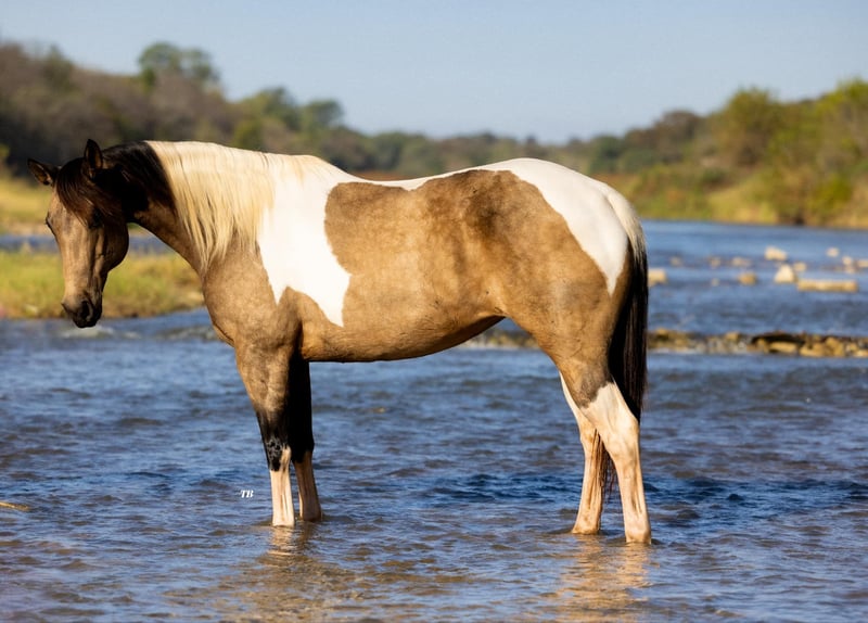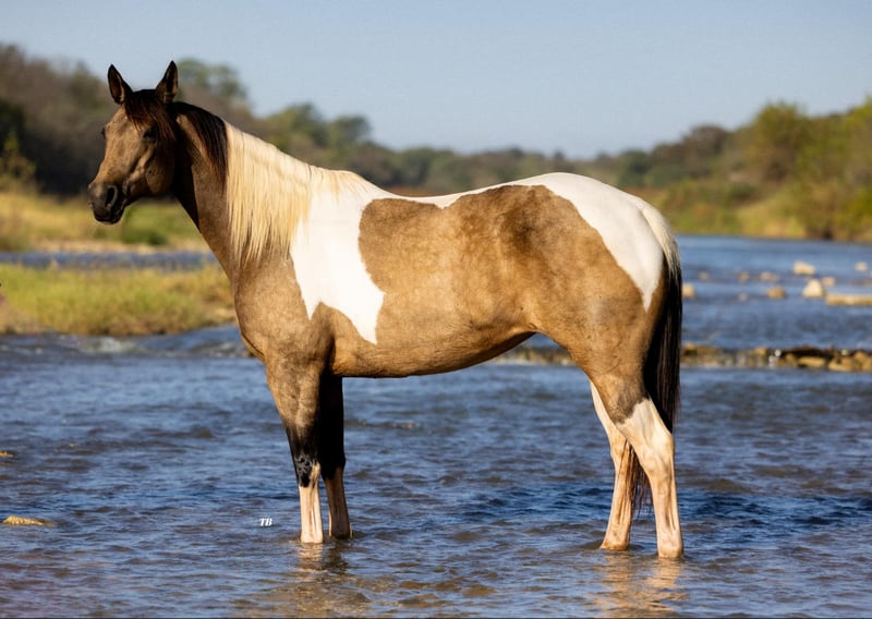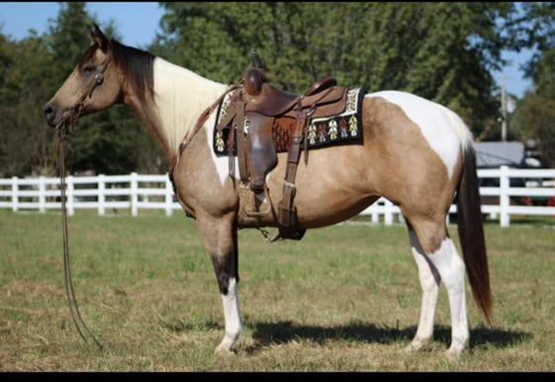ONLINE AUCTION Place your bids at www.PlatinumEquineAuction.com Starting Bid $3500 Auction ends November 17th, 2024 Need a new saddle? Check out White Rock Saddles on our website or Facebook! Jenna is the most stunning 9 year old buckskin and white paint mare standing at 15.2 hands tall. Not only is she the sweetest horse in the barn, she is stunning to look at and is sure to get you noticed anywhere you go. Jenna has been used in a lesson program, been rode on the ranch doing day work, trail rode and rides English with a beautiful style. She is gentle and great for any member of the family. Most of all she is safe to be around as well as ride. She stands in cross ties for grooming , loads and unloads in the trailer easy, stands for baths, rides bareback, traffic safe and just a great all around horse. Jenna would excel in all the events from showing in Halter to English or Western events. Her personality is definitely sweet and willing to do any job ask of her without any hesitation. She has truly been a pleasure to have in our barn and we look forward to finding her the perfect home where she will be loved! Please call or text Megan at 572-205-5282 with Florinia Equine to arrange a time to come see her in person or have a FaceTime viewing if you live far away. This mare is definitely one you don’t want to miss the opportunity of owning. She is the kind you search long and hard to find that’s perfect for the whole family! She is up to date on coggins and fresh feet trimming. She is currently shod on the front feet, barefoot on the back and is great for the farrier. Shipping can be arranged anywhere. Located in Guthrie, OK. ONLINE AUCTION Place your bids at www.PlatinumEquineAuction.com Starting Bid $3500 Auction ends November 17th, 2024 Need a new saddle? Check out White Rock Saddles on our website or Facebook!