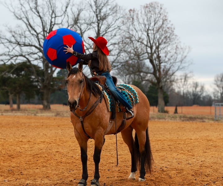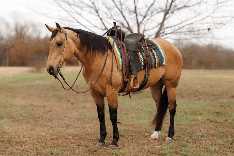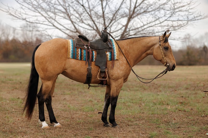 ⚜️ 𝓗𝓮𝓻𝓲𝓽𝓪𝓰𝓮 𝐖𝐢𝐧𝐭𝐞𝐫 𝓒𝓵𝓪𝓼𝓼𝓲𝓬⚜️ Happening now thru MONDAY | DECEMBER 29th - Available EXCLUSIVELY on HorseBid's website! For more details and to register visit: www.Horsebid.com CONSIGNOR CONTACT: Lacey Wilf 501-940-8704 LOCATION: Quitman, AR BREED: Quarter Horse REGISTERED: Yes REGISTERED NAME: Fritzy Slidin Solano COLOR: Buckskin HEIGHT: 15 AGE: 13 GENDER: Mare Fritzy Slidin Solano, affectionately known as Fritzy, is a 2012 AQHA mare standing a handy 15 hands, and she is the kind that makes you smile every time you swing a leg over. Stylish, confident, and effortlessly capable, she blends finished performance with a composed, gentle mind—wrapped up in a beautifully made package. Fritzy is a finished barrel horse with a solid, honest handle and the kind of consistency everyone looks for. She is truly the same mare every ride, even with time off—no surprises, no theatrics, just step on and go. She has extensive experience at the stockyards and out on the trail, where she proves her level-headed nature time and time again. Traffic, noise, new environments, and everyday chaos doesn’t bother her; she takes everything in stride with quiet confidence. On the ground, Fritzy is a standout. She has excellent manners, is easy to catch, polite to tack, and a pleasure to be around. Gentle to her core, she’s the kind that meets every situation with a calm eye and a willing attitude, making her enjoyable for a wide range of riders. She’s also easy on the eyes. Fritzy is well made with good bone, balance, and shape, the kind of mare that looks athletic and correct from every angle. Her pedigree speaks for itself, backed by proven bloodlines that add depth to her performance résumé and make her an exciting broodmare prospect when the time comes. She has clean, current front-end X-rays available for review. Finished, fancy, gentle, and cool as they come—Fritzy is the rare mare that brings ability, brains, beauty, and pedigree together in one very boujee package.