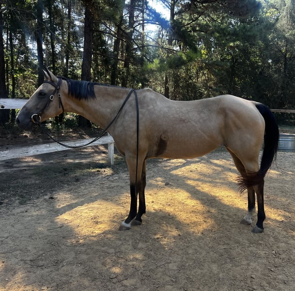 For Sale: Beautiful 15hh Buckskin Quarter Horse Mare – "Skyler" Located near Charlotte, North Carolina Meet Skyler, a stunning 13-year-old buckskin Quarter Horse mare standing 15 hands high. I’ve had the pleasure of owning her for the past three years but due to work commitments I do not have the time to give her anymore. Skyler has a sweet, willing nature and is not at all "mare-ish" – she’s an absolute joy to be around. She loves being on the trails and will happily step over logs and cross bridges. She’s also comfortable working in the arena and has solid basics under saddle in both English and western. She crossties, stands quietly for the farrier, and has excellent ground manners. Skyler is very low-maintenance: she’s barefoot with strong, healthy feet, can live out or be stalled, and only sees the vet for routine vaccinations. She is a sensitive and responsive ride, so not suitable for beginners/young kids so a confident intermediate to advanced rider will really enjoy her the most. Skyler would make a wonderful partner for someone looking for a reliable trail companion or a fun all-around horse with a great brain and lovely movement. - Priced in the mid four figures for a quick sale. - Located near Charlotte, NC Please—no time wasters. Serious inquiries only. We’ve had quite a few window shoppers. Please p.m. to schedule a viewing or call 980 288 2407.