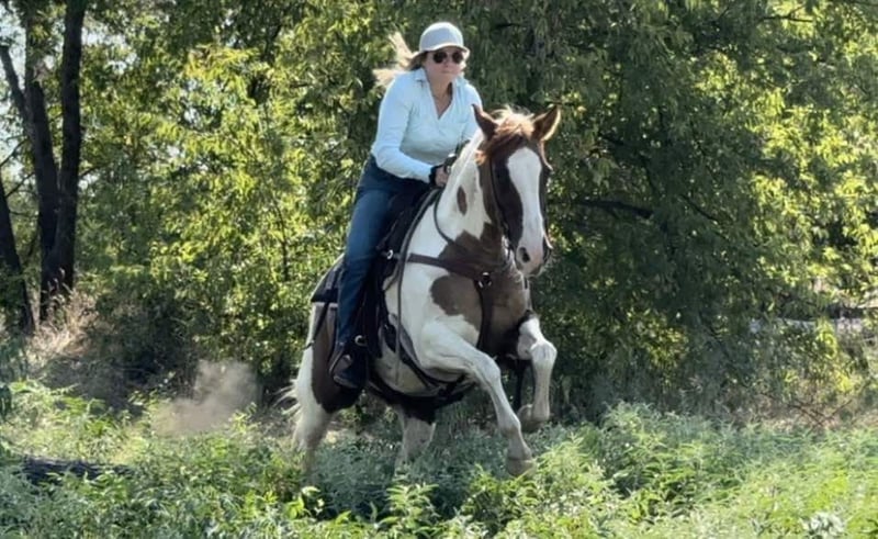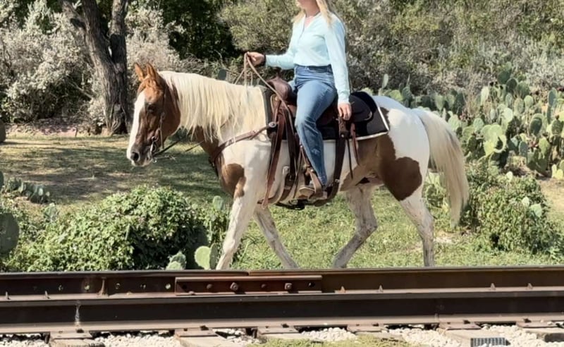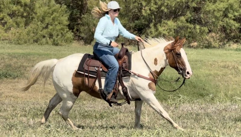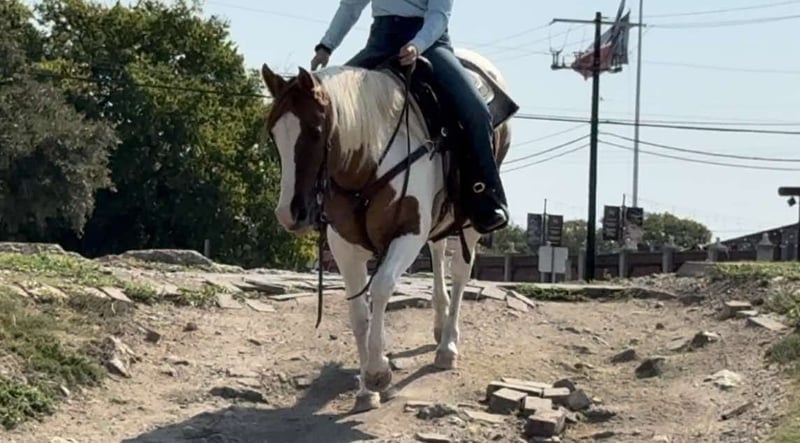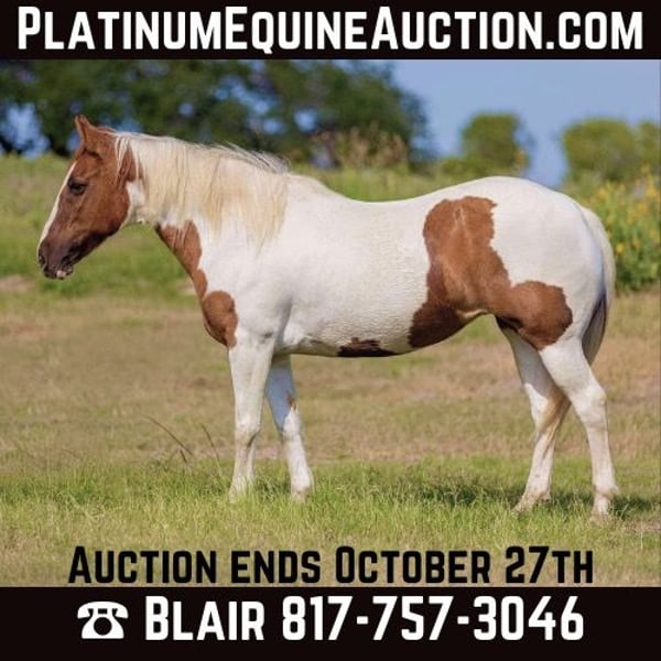 ONLINE AUCTION Place your bids at www.PlatinumEquineAuction.com Starting Bid $3500 Auction ends October 27th, 2024 Need a new saddle? Check out White Rock Saddles on our website or Facebook! Bonita is a 14.2H, 12 yr old paint mare that is absolutely SAFE SAFE SAFE!!!! She was born and raised by the same family her ENTIRE life where she was used in a therapy program and for the family’s children, grandchildren, grandmas and everyone in between! The therapy program was for special needs/rehabilitation therapy. Bonita has proven time and time and time again that she is the SAFE go to mount for anyone to throughly enjoy! Sadly the program closed and they couldn’t keep them all and that’s the ONLY reason we’re able to offer her now. We promised a good friend whose uncle owned the center we’d fine her a GREAT home! This mare has it all! She’s thicker than a snicker and absolutely COMFORTABLE to ride! Bonita is easy on the eyes and will be the prettiest lady on the block. Not only is gorgeous, she’s very well broke and has everything you need to make your next beginner, lesson, therapy, or trail horse! She also would excel as a kids playday horse! One of our FAVORITE things about her is she knows how to PARK! Tap the saddle horn and tap her foot with yours and she bows/parks down for you to get on!! She rides like one should, goes exactly where you point her, neck reins, moves off leg, goes the very speed you ask and stops right when you ask her to! Bonita aims to please and never wants to do anything out of line! She has absolutely ZERO buck, bolt, rear or bad habits. She stands absolutely quiet at the trailer (with or without a buddy), loves her bathes, and leads/loads perfectly. She is absolutely NOT spooky in the slightest and has seen basically all there is to see in town and on the trails! If you’re looking for your next trail blazer, kid safe, beginner safe, lesson horse or just an easy chill horse you can kick back and crack a beer on, this is your girl! Bonita is NOT marish and has gotten along great with everyone we have. She is UTD on teeth, feet and coggins and ready for her new forever home! This mare deserves the VERY best and you’re absolutely sure to fall in love the second you lay eyes on her! Don’t miss this sweet girl that will keep your whole family begging to ride her everyday! More pics and videos on her website page at northtexashorsecompany.com/bonita Please call Blair with North Texas Horse Company for more info at 817-757-3046. We are located in Weatherford, TX and can help arrange affordable shipping to anyone!! ONLINE AUCTION Place your bids at www.PlatinumEquineAuction.com Starting Bid $3500 Auction ends October 27th, 2024 Need a new saddle? Check out White Rock Saddles on our website or Facebook!