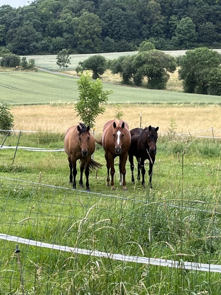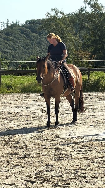 Beautiful mare seeking a new home. She had a few foals before my time and was originally kept at Merzig Hofgut Berg for many years. With us, she has been used for relaxed trail rides, which she handles very well. Year of birth: 2010 Sire: Hollywood Dun It Laboklin tested and clear Height: approximately 154 cm Color: Buckskin (Dun) Good qualities: no biting, no kicking, easy to handle for the farrier, very calm, never spooks at people, never pushes. Thick mane and tail. Suitable for guided walks with small children. Less good qualities: dust allergy, deworming only with a special method, sometimes needs a gentle reminder when gathering her in the evening. In the stable, she needs moist or steamed hay, otherwise she coughs. No problem with round bales in the paddock. Last year, she was at Lutz Lekebusch for a 4-week refresher. I can easily imagine her as a mother/daughter team or for older riders for leisurely rides, or as a broodmare. There are two geldings that look like her. Interested parties are welcome to arrange a pre-purchase examination (AKU). A co-ownership or breeding agreement will be included in the contract. Please read carefully and provide your name and phone number when inquiring. Priority goes to the best offer.