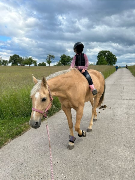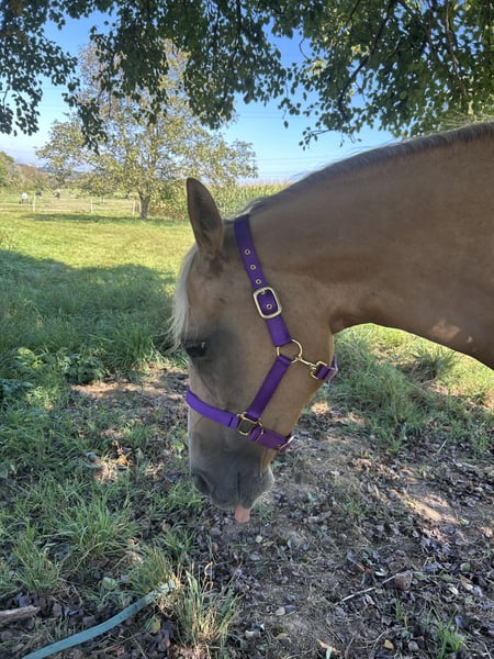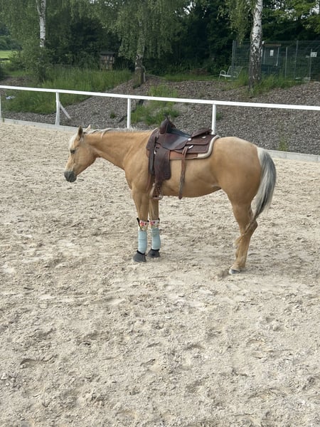 Our wonderful Nelly is looking for a loving forever home. She is a 15-year-old Quarter Horse mare with solid, refined training. Nelly is sensitive to ride, reliable in the field, and absolutely friendly in her manner. She has experience working with children and as a therapy horse – my 5-year-old daughter has regularly ridden her. In early 2025, she sustained a tendon injury and is currently in the rest and healing phase, with box rest. Walks are already permitted, during which she is led or ridden by my daughter. Once fully recovered, she can easily be used as a leisure horse – however, the weight limit is 70 kilograms. A gentle muscle-building phase is naturally necessary. In September 2025, Nelly also underwent successful surgery on her paranasal sinuses due to mucus buildup. The operation was complication-free, and she is now fully healthy again. Only the stitches from the nasal incision are still present, but these are healing without issues. Important: Nelly is only available for pasture turnout with plenty of movement space. In the herd, she appears social and tends to be lower-ranking. She avoids conflicts and only sometimes emits a soft squeal when challenged, but she is never unfriendly or aggressive. Since she is still in recovery and requires some care and time, we are offering her at a significantly reduced price. A wonderful opportunity to acquire an exceptionally well-behaved and family-friendly horse at a fair price.