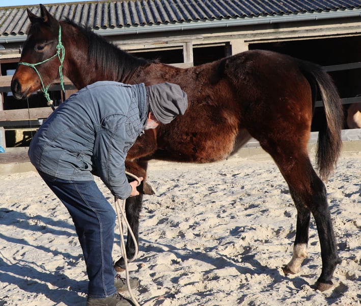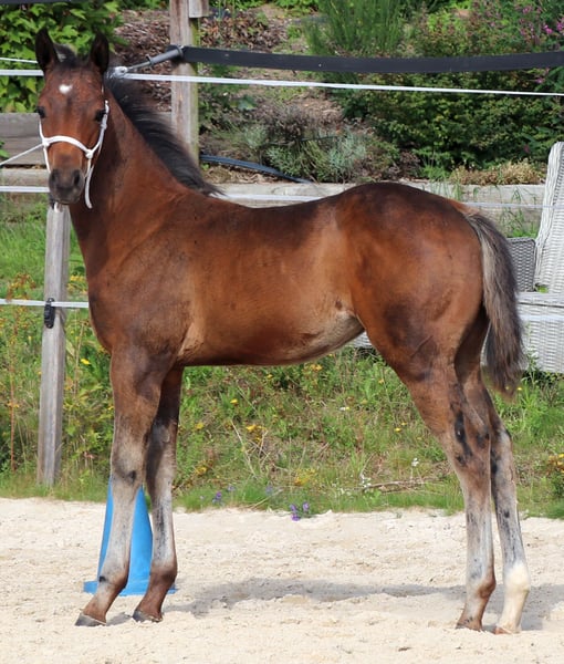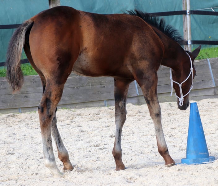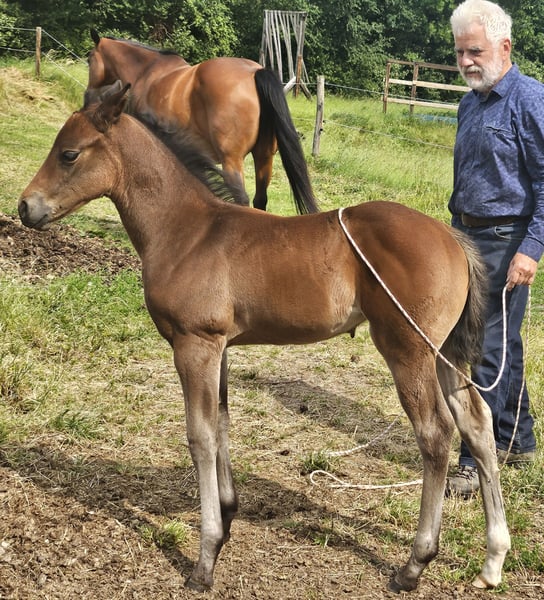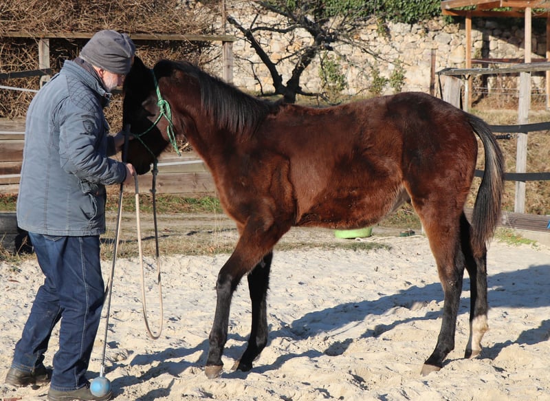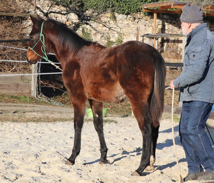 Poca est très typée, bien construite et proche des humains. Son ascendance de Ranchhorse du côté paternel est combinée avec des qualités de Cutting, Reining et Working Cowhorse du côté maternel. Actuellement, elle profite de la vie sur un grand pré. Nous la préparons doucement à sa future vie avec les méthodes du Natural Horsemanship.