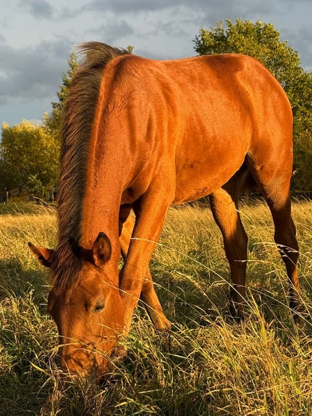 MD Pretty Miss Dunit - eine bildhübsche Quarter Horse/Paint Horse Stute, geboren am 11. März 2025. Sie präsentiert sich in der eleganten Farbe bay (braun) und wird voraussichtlich ein Endmaß von etwa 150 cm erreichen. Margie ist doppelt registriert bei der AQHA und der APHA, ihre Papiere liegen bereits vor. Bei der APHA-Fohlenschau in Könnern wurde sie mit der hervorragenden Wertnote 8,10 als 1a Prämienfohlen ausgezeichnet und belegte in ihrer Klasse den zweiten Platz. Unter insgesamt 18 Fohlen wurde sie zudem als zweitbestes Fohlen der gesamten Schau bewertet - ein Beweis für ihre hohe Qualität und ihr großes Potenzial. Diese junge Stute überzeugt durch ein sehr korrektes Gebäude, eine harmonische Bemuskelung und eine ausgezeichnete Entwicklung. Sie ist rundum gesund, wurde regelmäßig entwurmt, altersentsprechend geimpft und kennt sowohl Tierarzt als auch Hufschmied. Genetisch ist sie bestens abgesichert - sie ist 7-Panel n/n sowie LWO und Splashed White n/n getestet. Besonders auffällig sind ihre partiell blauen Augen, die ihr ein außergewöhnlich schönes und ausdrucksstarkes Erscheinungsbild verleihen. Margie wächst artgerecht im Herdenverband auf und genießt ganztägigen Weidegang. Sie erhält hochwertiges Futter, das optimal auf die Entwicklung von Sehnen, Gelenken und Knochen abgestimmt ist. Im täglichen Umgang zeigt sie sich freundlich, brav und ruhig. Sie ist aufmerksam, menschenbezogen und lernt sehr schnell. Das kleine Fohlen-ABC beherrscht sie bereits sicher, sie ist halfterführig und kennt die grundlegenden Routinen. Auch ihre Abstammung lässt keine Wünsche offen: Margie stammt aus einer erstklassigen Reining-Linie und ist DQHA-Futurity startberechtigt. Sie hat Colonels Smoking Gun/Remenic N Dunit /Arc Sparkle Surprise noch im Papier. Ihre athletischen Grundgangarten und ihre Leistungsbereitschaft lassen schon jetzt erkennen, dass sie sowohl für den Sport als auch für den ambitionierten Freizeitreiter hervorragend geeignet ist. Ob als zukünftiges Showpferd oder als treue Freizeitpartnerin - MD Pretty Miss Dunit vereint ein korrektes Exterieur, sportliches Potenzial und einen Charakter aus Gold. Für diese außergewöhnliche junge Dame wird ein liebevolles 5-Sterne-Zuhause gesucht, gerne mit der Möglichkeit, ihr Talent im Sport weiter zu fördern. Sie ist ab sofort bereit, in ihr neues Zuhause umzuziehen und ihren weiteren Weg mit Menschen zu gehen, die ihre Qualität zu schätzen wissen. NRHA Germany, PHCG Futurity und ins EWU Jungpferdeprogramm einbezahlt.