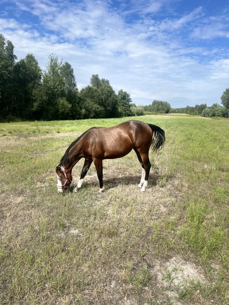 Na sprzedaż piękna klacz American Quarter Horse! Dane: - Rasa: American Quarter Horse - Płeć: Klacz - Rok urodzenia: 2024 -sire Tricked out Spook LTE 72 000 ,Sire Earnings 800.000$ - Umaszczenie: Bay - Wzrost: 150 cm -Panel Test 6 N/N - Specjalizacja: Reining Ta młoda i wszechstronna klacz to doskonały wybór dla miłośników reiningu oraz osób poszukujących wszechstronnego konia do dalszego szkolenia. Zadbana, o dobrym temperamencie, gotowa na nowe wyzwania. Zainteresowanych zapraszamy do kontaktu!