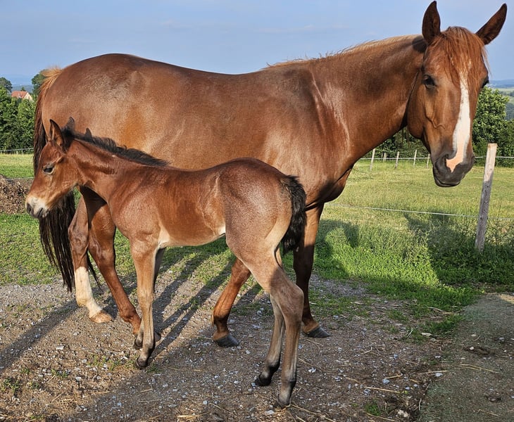 VALENTINA es muy típica, bien conformada y muy sociable con las personas. Será una compañera muy confiable para el jinete de ocio o competición ambicioso a lo largo de toda su vida. VALENTINA está habilitada para participar en DQHA y Futurity regionales. La estamos preparando cuidadosamente para su futura vida mediante métodos de Natural Horsemanship. Disfruta de su vida en un paddock abierto, en una amplia pradera, junto a una manada mixta. Bajo el botón "Protocolo de entrenamiento" puede consultar el estado actual de su formación.