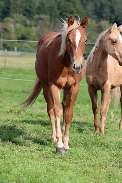 SHESA VOODOO CHIC GG Sorrel AQHA Stute Geboren: 16.05.2024 Endgrösse ca 150 cm 7 panel n/n ee aa