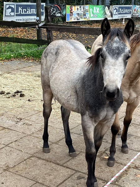 Bärbel – 1-jährige Quarter Horse Stute in Dark Buckskin mit Top-Abstammung. Ein echter Hingucker mit Charme, Ausstrahlung und Qualität! Unsere Bärbel ist eine bildschöne, dunkel buckskinfarbene Jungstute mit dem gewissen Etwas. Schon jetzt zeigt sie, was in ihr steckt – eine Traummaus mit Ausdruck, harmonischem Körperbau und klarem, freundlichen Charakter. ✅ Alter: 1 Jahr ✅ Farbe: Dark Buckskin ✅ Rasse: Quarter Horse ✅ Abstammung: Vater: SR Hollywood Dundee (Hollywood Dun It-Linie) Mutter: SR Reminics Melinda (Reminic gezogen) Mit ihrer exzellenten Abstammung vereint Bärbel bewährte Reining-Genetik – Hollywood Dun It trifft auf Reminic – und bringt damit alles mit, was man sich für Sport, Show oder Zucht wünscht. Sie wächst artgerecht auf, ist halfterführig, neugierig und menschenbezogen. Egal ob du einen zukünftigen Sportpartner, ein Zuchtjuwel oder einfach ein Pferd mit Ausstrahlung suchst – Bärbel zieht alle Blicke auf sich! Bei Interesse und für weitere Informationen freuen wir uns auf Ihre Kontaktaufnahme.