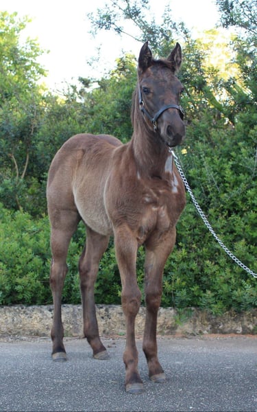 ️Smoky Mare Blue Roan filly 2025 ✅️Extraordinary pedigree. Joe Hancock 10% and 28% Blue Valentine. Homozygous roan and black. Father: MJM Saltys Blue Ezra Mother: Wyo Laramie Doll ✅️Father line: Blue Valentine/Joe Hancock ✅️Mother line: Blue Valentine/Gooseberry ✅️7 panel tests N/N It is located in Spain Anyone seriously interested contact me privately and we will communicate the price For information +393314676201 We are happy to organize transport.