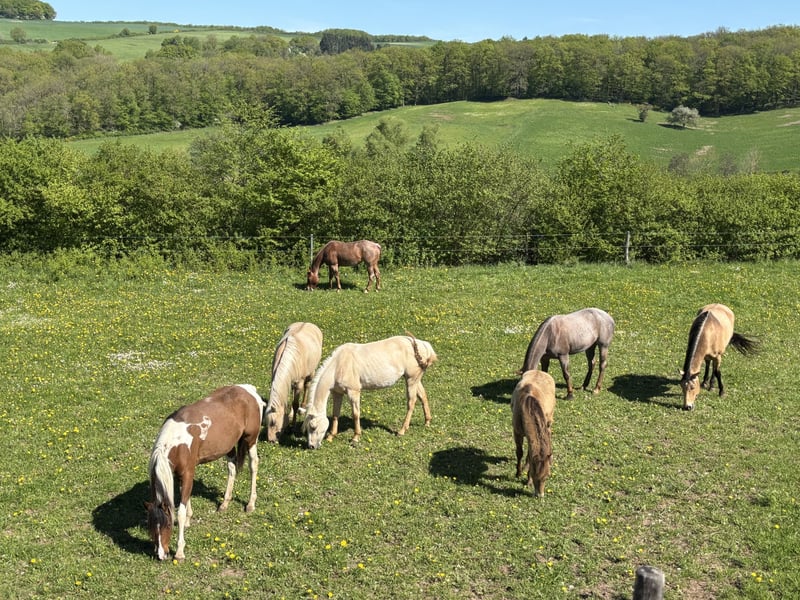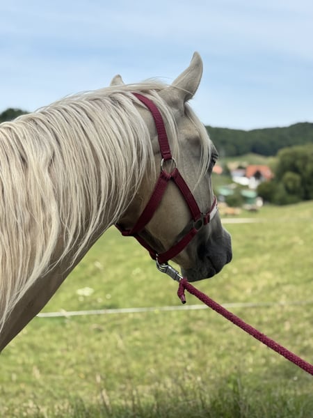 Zum Verkauf steht eine wunderschöne American Quarter Horse Stute im Dunalino-Farbtyp. Geboren im Jahr 2023, ist sie bereits jetzt ein echter Blickfang mit ihrem eleganten Erscheinungsbild und ihrem besonderen Wesen. **Merkmale:** - **Rasse:** American Quarter Horse - **Geschlecht:** Stute - **Geburtsjahr:** 2023 - **Farbe:** Dunalino - **Stockmaß:** 150 cm - **Einsatzbereich:** Western Diese talentierte Stute eignet sich hervorragend für den Westernsport und hat das Potenzial, sich in verschiedenen Disziplinen zu beweisen. Sie ist gut sozialisiert und hat einen starken Charakter, was sie zu einer idealen Partnerin für Reiter aller Erfahrungsstufen macht. Für Anfänger ist sie aufgrund ihres Ausbildungsstandes nicht geeignet. „Unicorn“ hat ein starkes Fundament und wirklich sehr stämmige Beine. Ihr dickes gesundes Röhrbein zeichnet sie aus. Sie geht im den Hänger, ist artig beim Hufe machen und ist regelmäßig geimpft sowie entwurmt. Seit dieser Woche steht sie auf der Vineyard Ranch für einen ersten leichten Beritt. Hier ist es uns wichtig, dass auf das Pferd eingegangen wird und sie langsam an das Leben als Reitpferd gewöhnt wird. Sie ist im Herdenverband artgerecht groß geworden und liebt einen Offenstall. Box ist nicht so ihr Ding aber muss sie sich jetzt auch im Reitstall dran gewöhnen. Ihre Mutter ist unsere beste Zuchtstute. Sie ist auch sehr gut unterm Sattel, wird von Kindern und Erwachsenen gleichmäßig geritten. Unser Wunsch wäre, dass sie bei Familie Bartmann jetzt erst mal die nächsten 3-4 Monate bleiben könnte. Der Preis steigt mit jedem vollendeten Monat. Sie ist 5 Panel N/N. Bei Interesse oder für weitere Informationen stehe ich Ihnen gerne zur Verfügung. Lassen Sie sich diese Gelegenheit nicht entgehen, ein tolles Pferd zu erwerben!