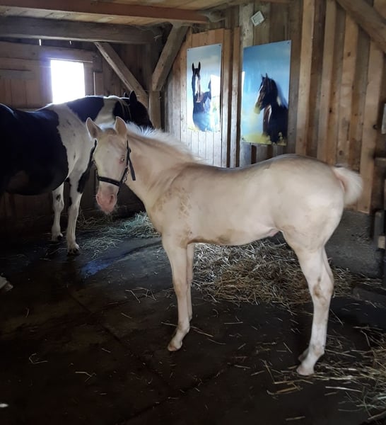 🌿 Pippilotta – notre jument azteque de 2 ans recherche sa maison de cœur 🌿 Notre magnifique pouliche Pippilotta (père Quarter Horse, mère espagnole) a 2 ans et est née et a grandi chez nous. Sa mère et son père proviennent de notre propre élevage – Pippilotta est donc un véritable poulain de cœur. Pippilotta grandit avec amour dans un troupeau mixte sur de vastes pâturages. Elle est curieuse, sociable et apporte un merveilleux mélange d'élégance et de sérénité. Dans le quotidien, elle se montre très facile à gérer – elle connaît le lien, donne ses sabots avec gentillesse, aime se promener et voyage jusqu'à présent calmement dans le van. Grâce à sa lignée, elle allie force, charisme et polyvalence – une excellente base pour son développement futur, que ce soit dans le loisir, l'équitation western ou l'équitation de travail. Nous souhaitons pour elle un foyer où elle sera encouragée avec patience, cœur et compréhension des chevaux. Si désiré, Pippilotta peut également rester chez nous pour son élevage, et il est également possible de la former chez nous plus tard ou de la ramener pour sa formation. ✨ Ceux qui souhaitent rencontrer Pippilotta sont cordialement invités à venir la visiter et à se laisser envoûter par son charme. Veuillez nous contacter uniquement par téléphone : 01624348386