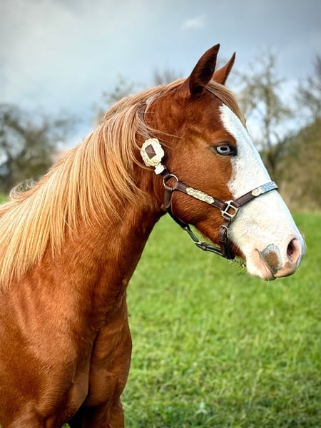 Gotta Cat Gun is an exceptionally typey Quarter Horse mare, born on March 10, 2024. She is sorrel-colored with an expected final height of approximately 14.1-14.2 hh. She is a true eye-catcher, featuring a striking blue and brown eye along with expressive markings. She impresses with correct conformation, a strong foundation, and a beautiful, well-balanced musculature. Honey is healthy, regularly dewormed, vaccinated, and consistently receives exemplary care from her veterinarian and farrier. She is raised appropriately in a herd in an open stable with pasture, demonstrating excellent social compatibility. Optimal nutrition, minerals, and loving daily care ensure her optimal development. In terms of character, Gotta Cat Gun leaves nothing to be desired: she is friendly, open, human-oriented, yet lively, highly intelligent, and confident. The mare enjoys cuddling, shows a lot of heart, and possesses impressive quick reactions. Her movements are supple and cat-like—a clear indication of her enormous talent in cutting. She already takes every opportunity to showcase her natural Cow Sense. Thanks to daily handling, she is completely reliable in her interactions: she masters the basics of foal handling, including leading, tying, grooming, washing, trailer loading, and visits to the veterinarian and farrier. She can be easily led by children as well. She has not yet been further trained, given her age. With her highly interesting pedigree (Metallic Cattack x Spooks Gotta Gun), her talent, and her strong character, she has everything needed to become a promising young prospect for cutting. At the same time, she is an attractive candidate for shows, leisure riding, and later breeding. Gotta Cat Gun holds AQHA registration papers and an DQHA equine passport. An existing life insurance policy with a "Unusability" clause can be transferred upon request.