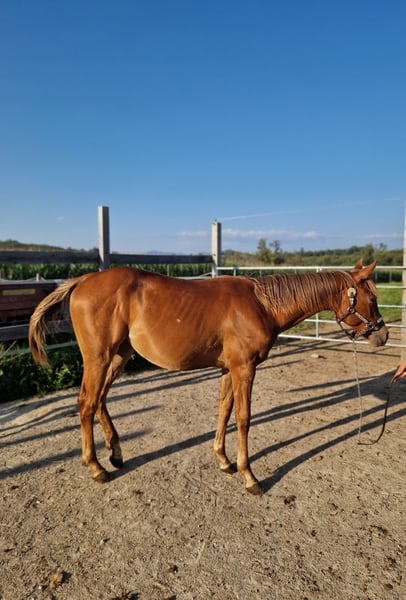 Dla naszej "ANNIE" (ZIPPOS BLUE FIRE) również szukamy 5-gwiazdkowego domu. Piękna klacz rasy Quarter Horse (ur. 2024) urodziła się na naszej farmie. Jej rodzice również są na naszej farmie: Matka: TL Blue Alice (Aint It The Blues) Ojciec: Zippos King Bar Annie to absolutna uczta dla oczu o uderzającym wyglądzie: Jej kolor sierści jest trudny do opisania: brązowy/ciemnoszary z lekkim miedzianym odcieniem w słońcu. Ma również bardzo uderzające ciemnoszaroniebieskie oczy, które sprawiają, że przyciąga wzrok! Ma świetną budowę i głowę, w której można się rozpłynąć! Porusza się wyjątkowo dobrze i nadaje się zarówno do zawodów, jak i do spędzania wolnego czasu. Jeśli więc szukasz czegoś wyjątkowego, Annie jest prawdziwym hitem. Nauczyła się wszystkiego, co trzeba wiedzieć w tym wieku: Przycinanie kopyt, prezentacja przed kowalem, pielęgnacja, prysznic/mycie, chodzenie/prowadzenie. Annie posiada paszport konia DQHA i amerykańskie dokumenty (certyfikat rejestracji) od AQHA. Regularnie ją odrobaczamy i zabieramy do kowala. Obecnie jest nadal hodowana ze swoją matką. Może zostać tutaj do dalszej hodowli lub przenieść się do nowego domu. Jeśli chciałbyś poznać Annie, napisz do nas.