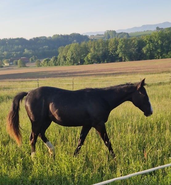 For Sale: American Quarter Horse - Appaloosa Mare – Perfect for Leisure and Hobby Riding! We are offering a beautiful American Quarter Horse mare, born in 2023. She is an elegant black mare with a height of 14.0 hh (still growing) and is ideally suited for recreational riding. The young mare is healthy, friendly, and curious, making her perfect for experienced riders looking for a reliable and charming horse to train and develop further. She has been lovingly raised and is already well-handled. The horse is fit, attentive, and shows great potential for further training. Ideal for riding and leisure activities. Currently, she is on the foal pasture. If interested or for further questions, please feel free to contact me. Viewing by appointment is possible. She will only be entrusted to loving, experienced hands.